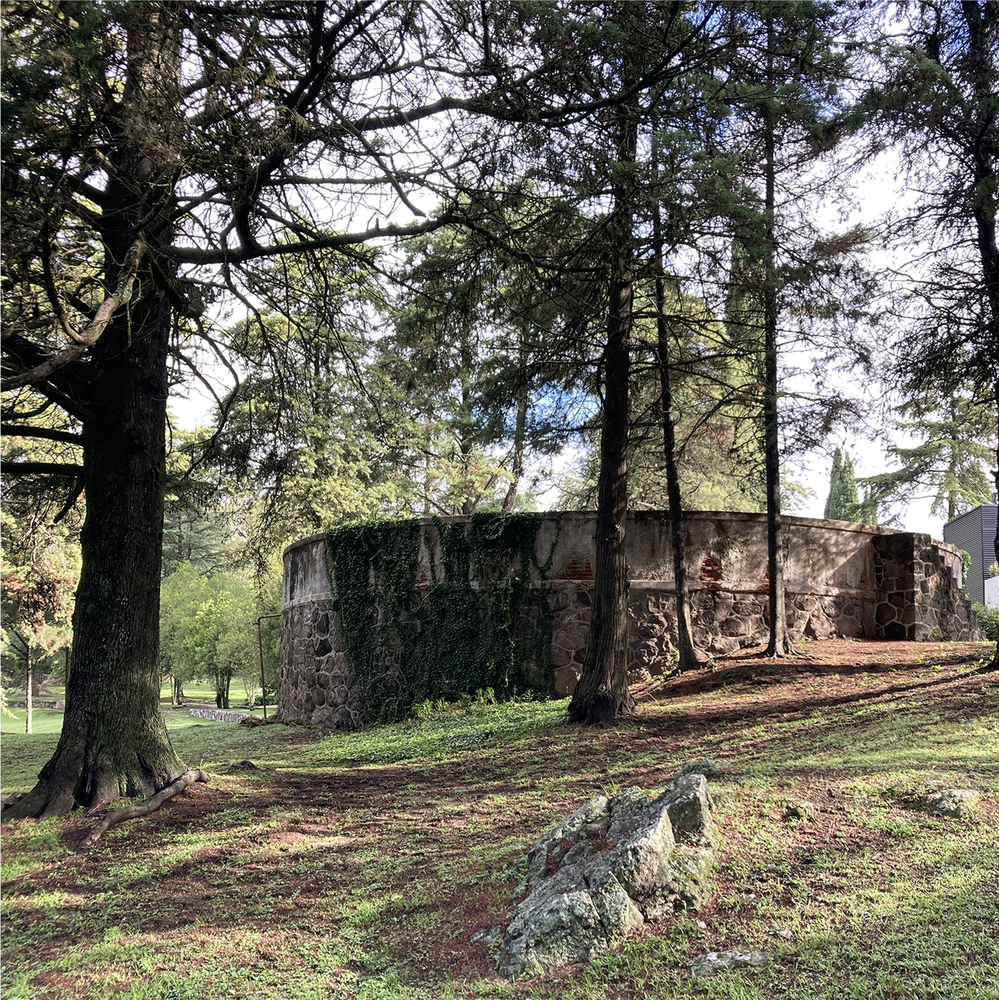 So we decided to recycle this circumference of 16 meters in diameter and 1.5 meters high, stripping it of its fractured walls and keeping the rocky platform on which we support the greenhouse, which adapts to its geometry: a sort of inverted circular tent, with a metallic structure and translucent polycarbonate envelopes.