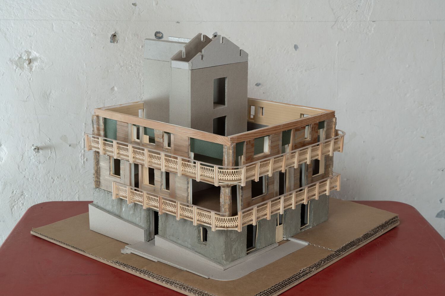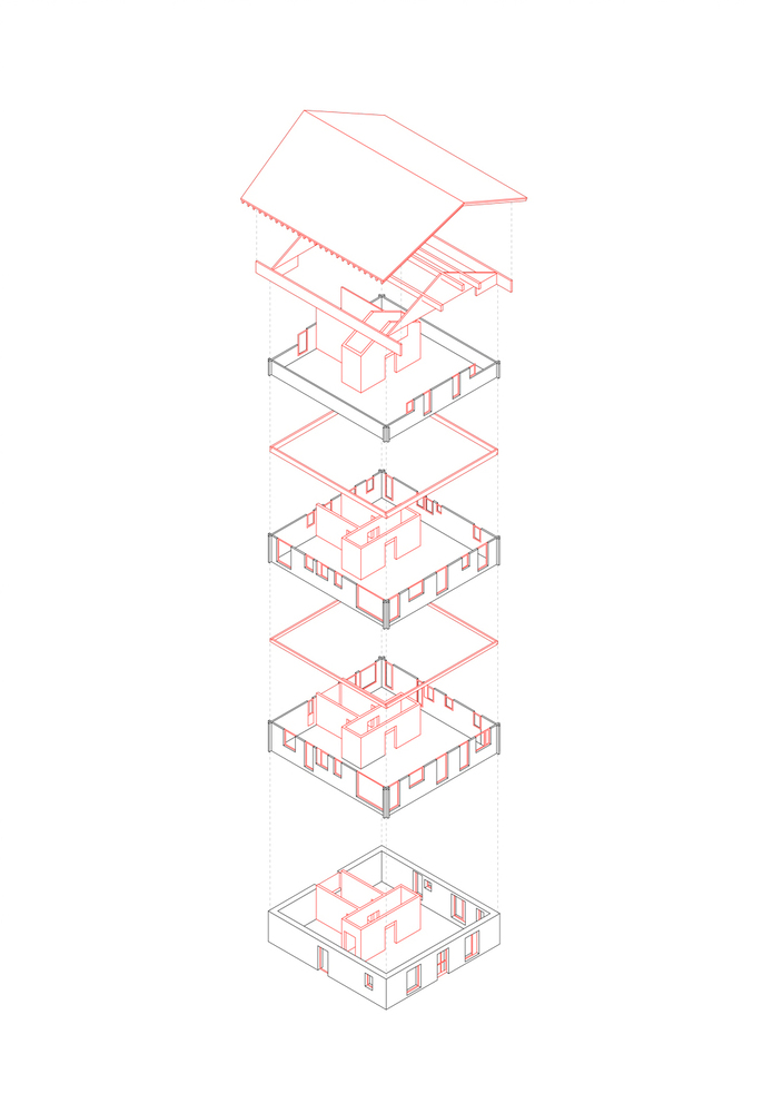 Rather than freezing history in a static restoration, the project embraces a living transformation, where each layer of the building asserts itself and tells its own story.