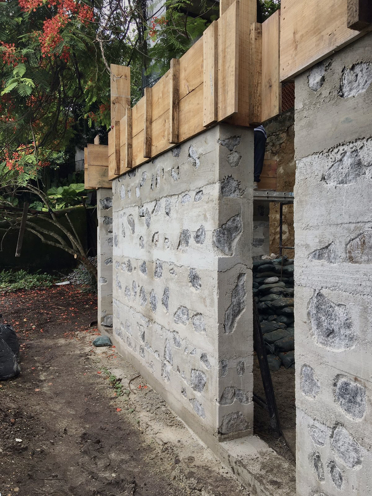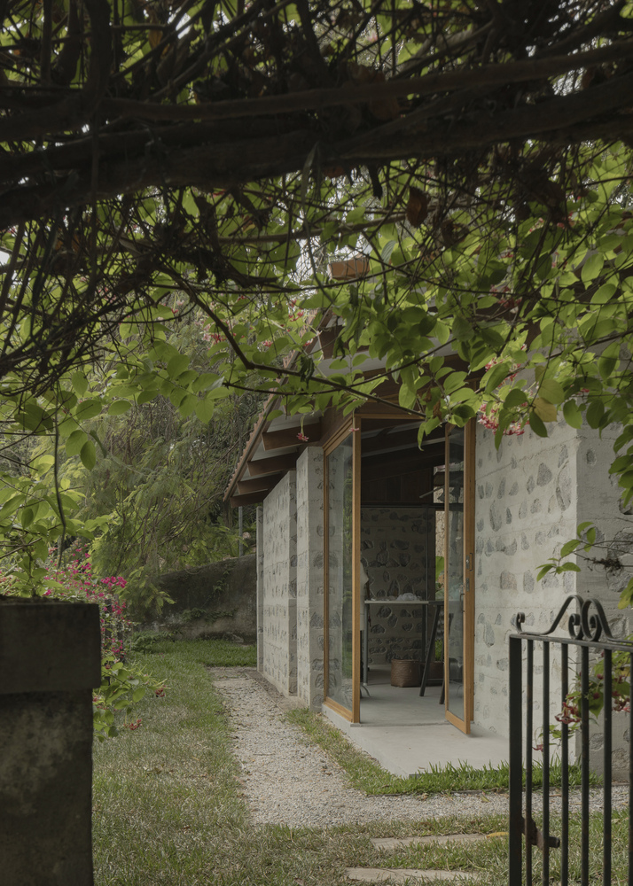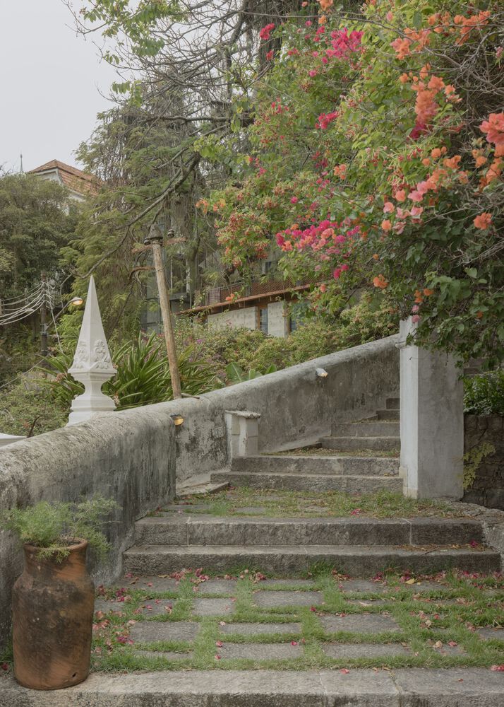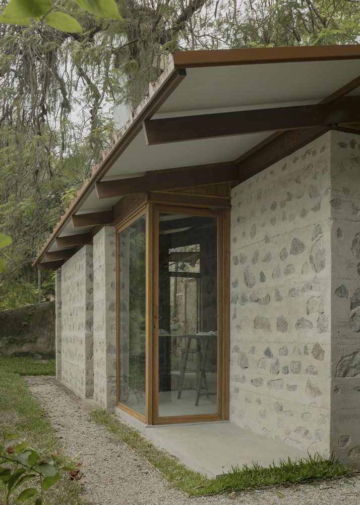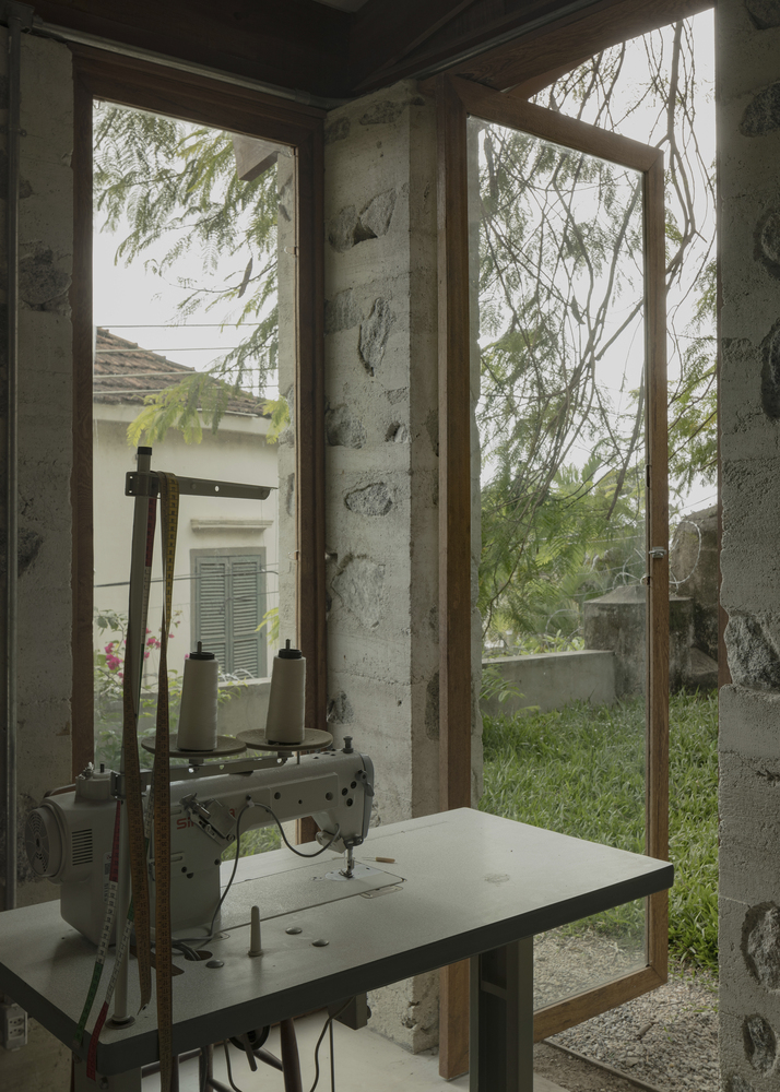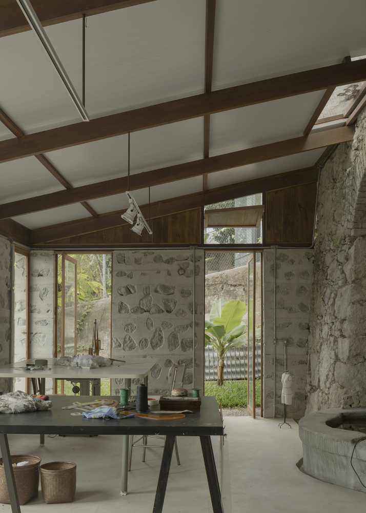 Located in the historic neighborhood of Santa Teresa in Rio de Janeiro, this sewing studio occupies a platform surrounded by a stone retaining wall, built over 200 years ago, according to local reports.