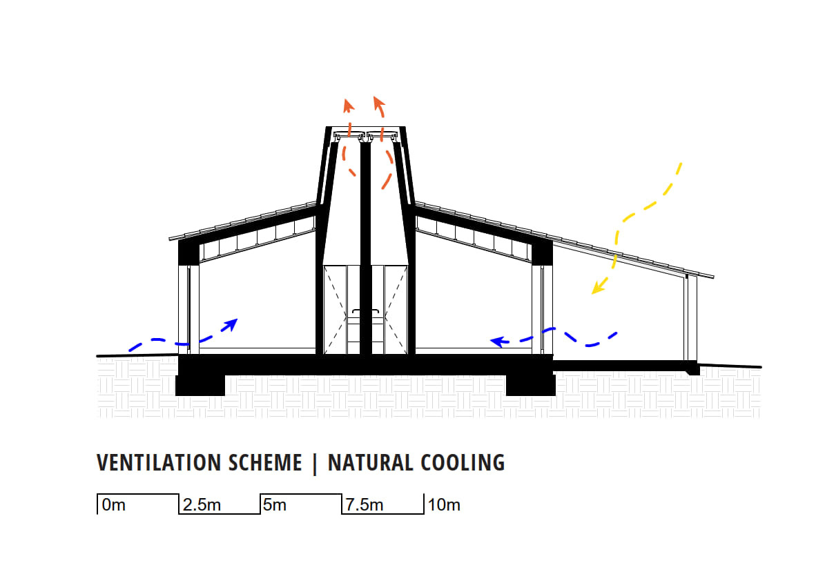 Openings were sized and distributed to maximize cross-ventilation, minimizing energy consumption.