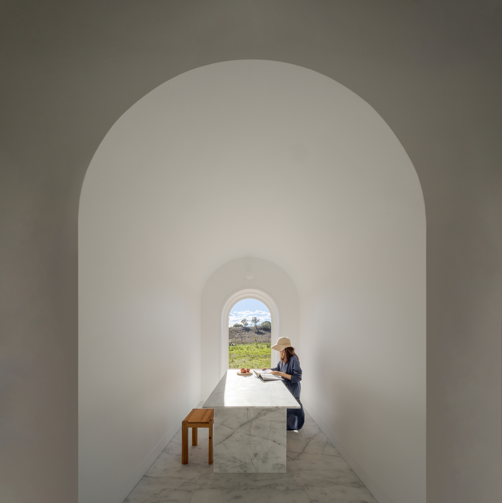 The arch, a vernacular element employed with simplicity, is reintroduced to define entrances and organize spatiality.