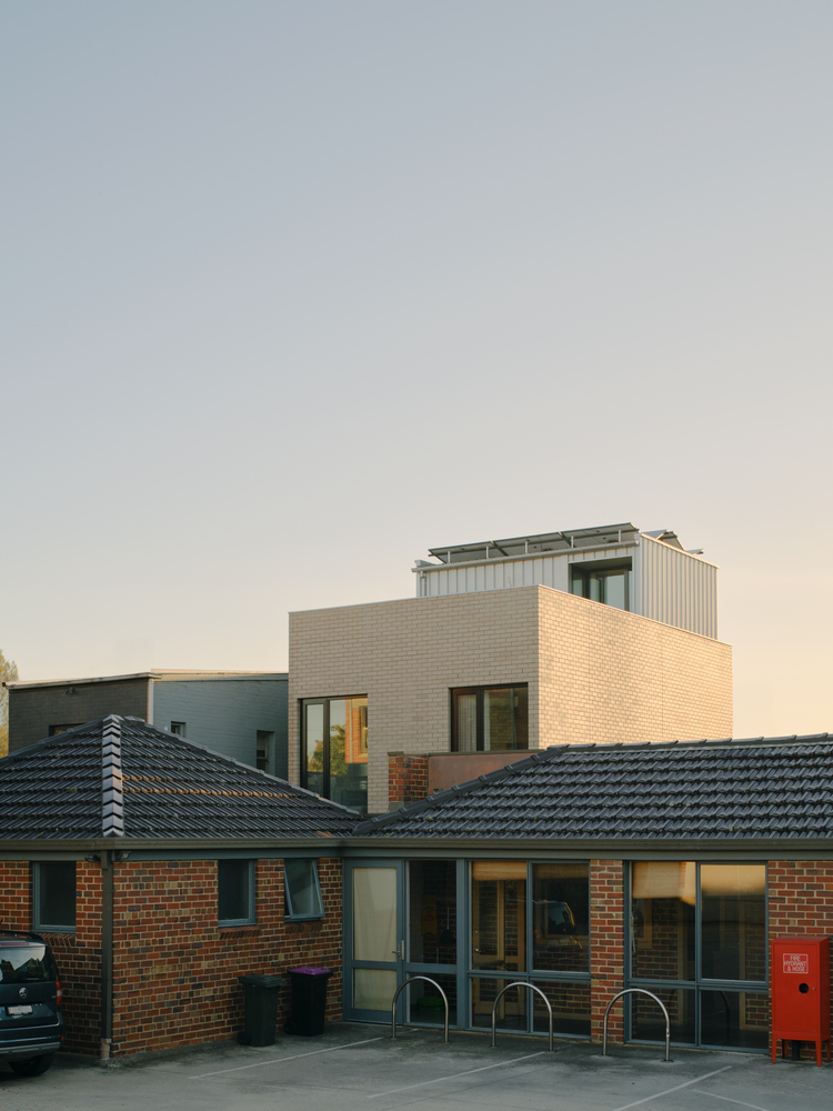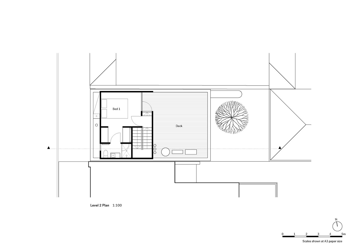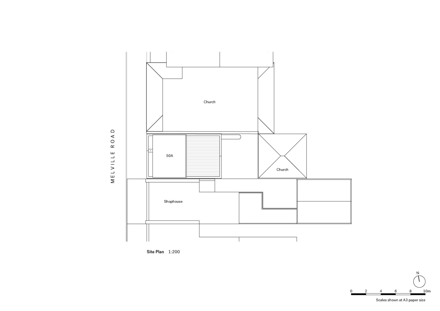 Its unique location on a small shopping strip allowed the house to be built up to the footpath with no setback, an uncommon typology in Melbourne.