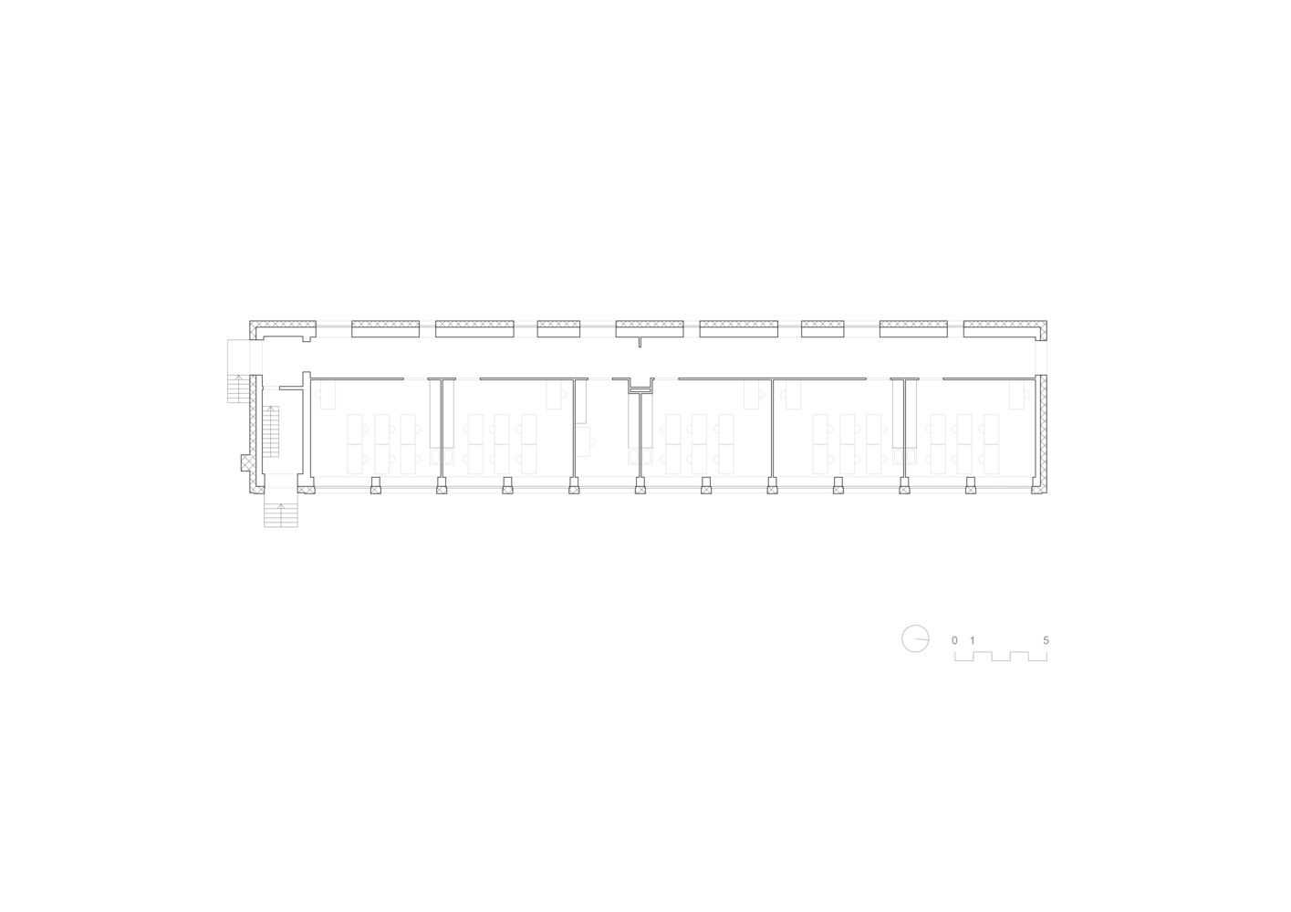 This strategy preserved the original structure while giving it a second life. On the street side, the new façade is partially closed to improve insulation, yet still allows natural light into the corridors. On the courtyard side, the façade opens generously, offering bright, well-lit classrooms and offices.