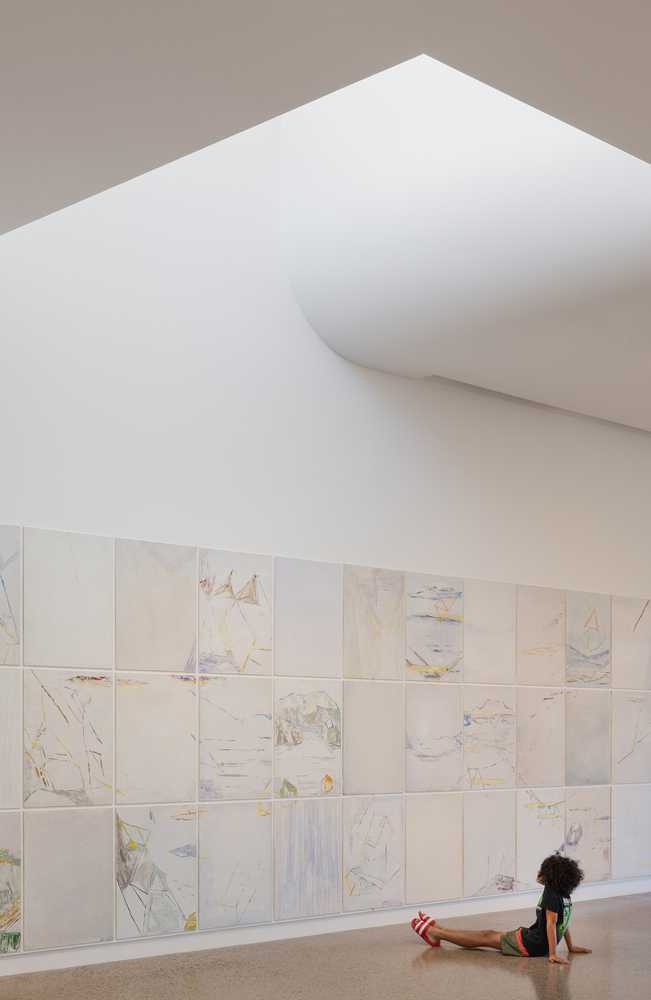 A new roof punctuated by south-facing skylights dramatically increases the internal volume of the gallery, bringing in gentle natural light, allowing for less reliance on artificial lighting.