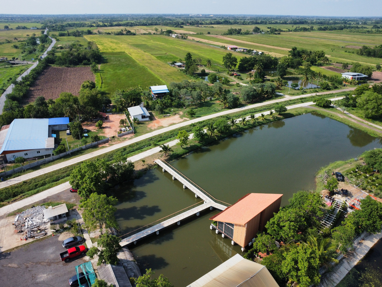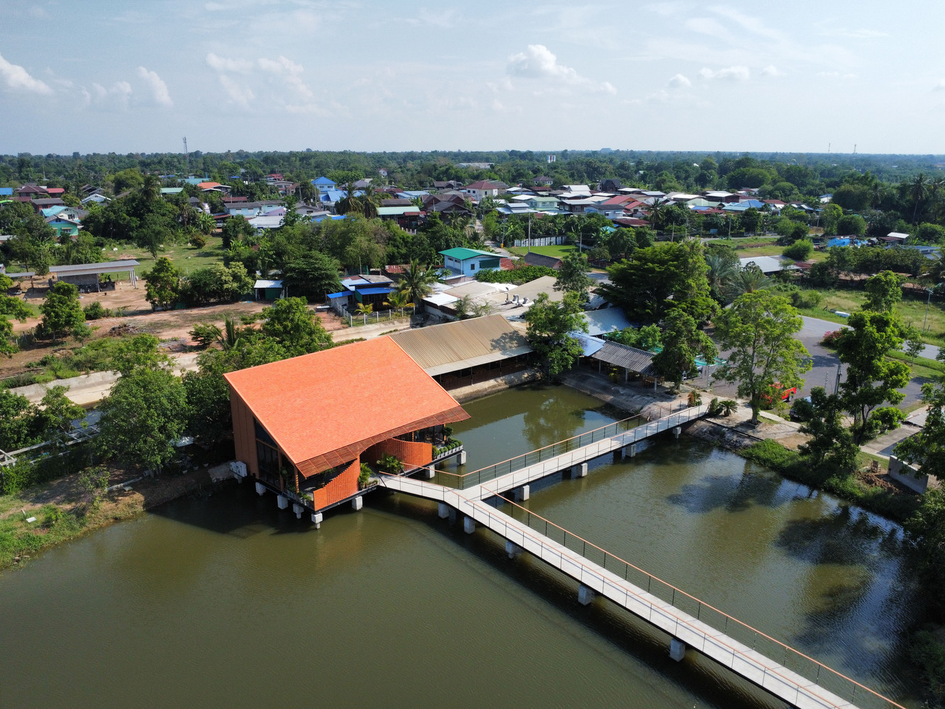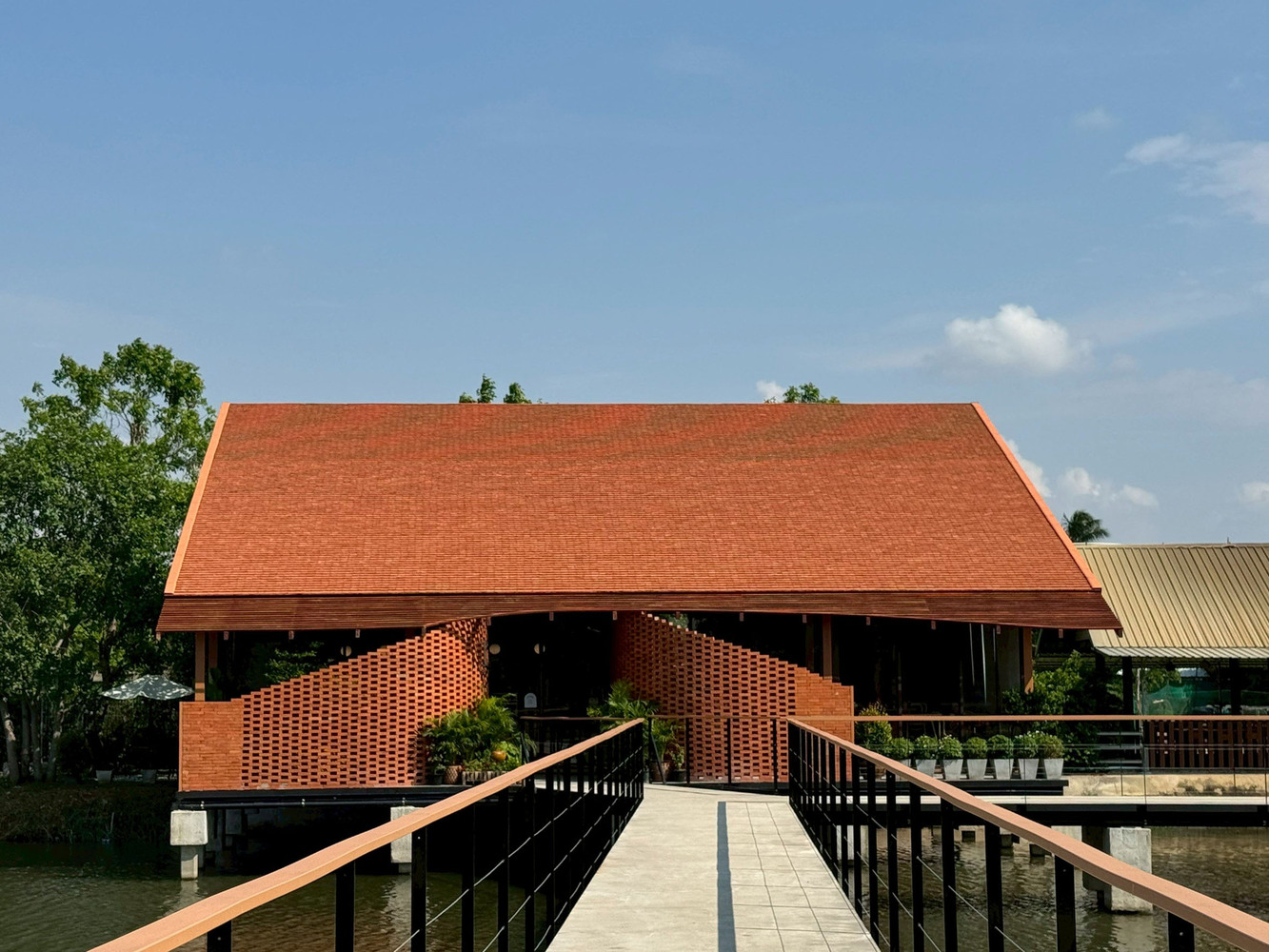 The project reinterprets these elements in a contemporary language, responding to the design brief, which called for a water-based structure that complements the existing context of "Chai Thung Restaurant", a local restaurant by the pond.