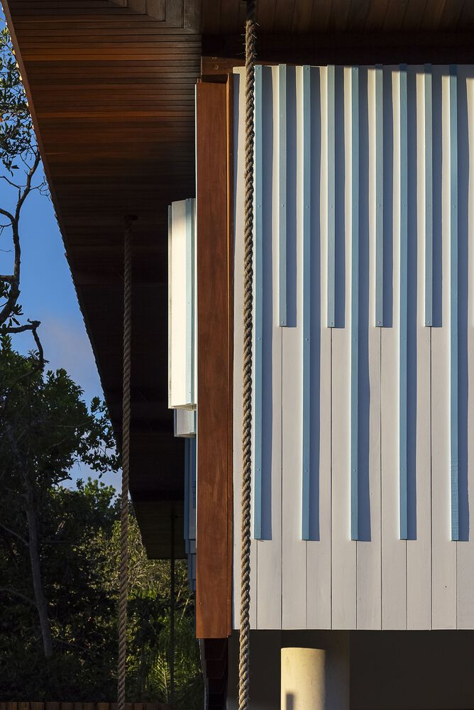 The wooden facade is a construction and ornamental system made up of joint covers, inspired by Pataxó, caiçara, but also southern, with dispersed origins.