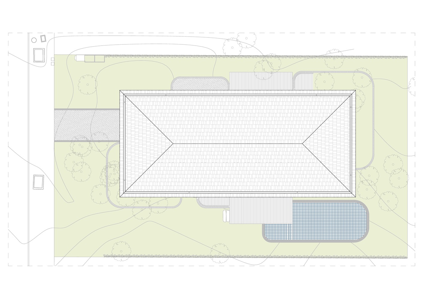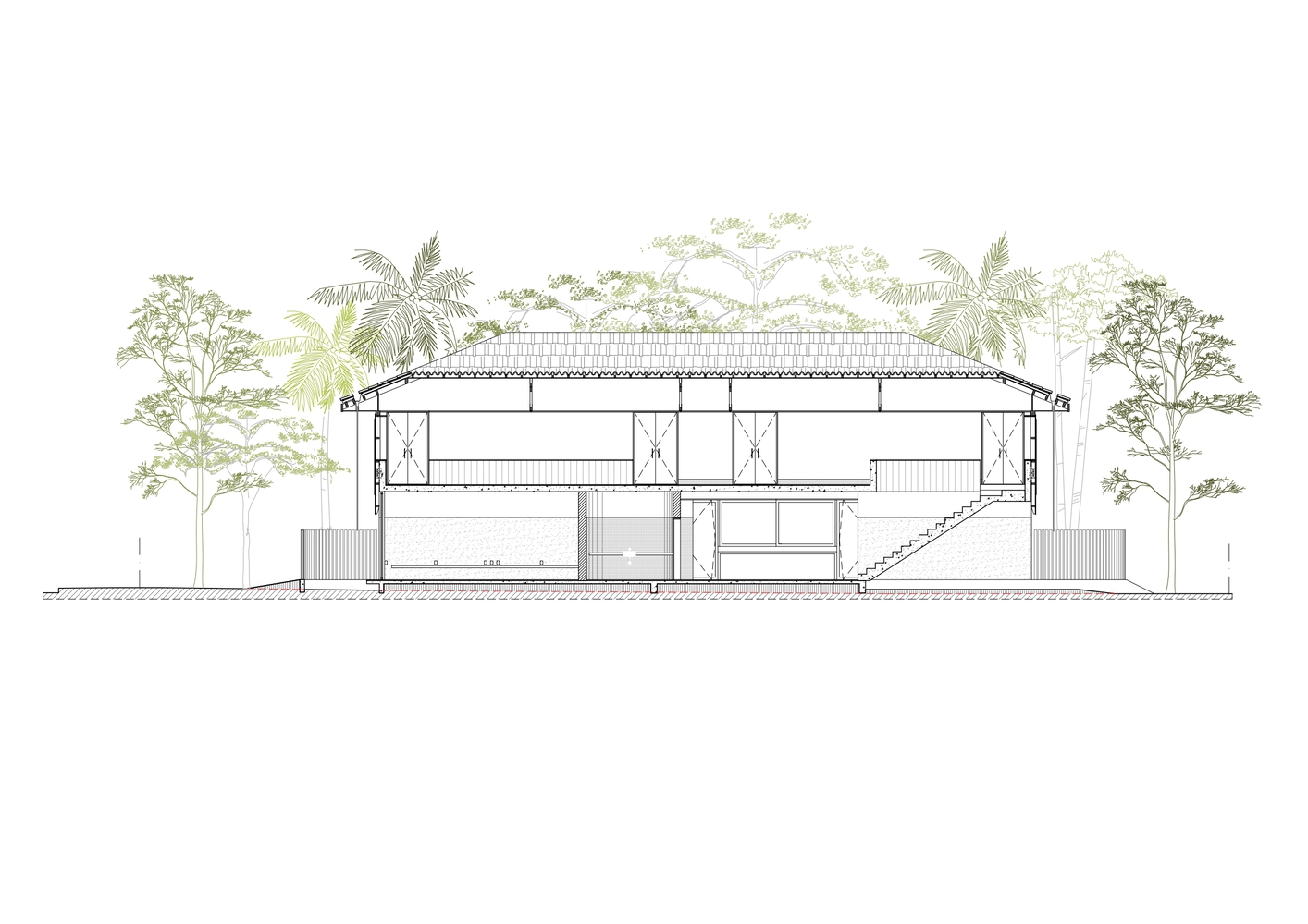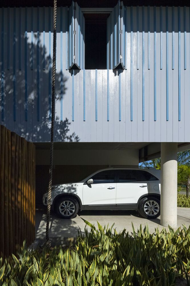 This tropical modernist-inspired layout supports a concrete tray that holds the structure and roof of the second floor.