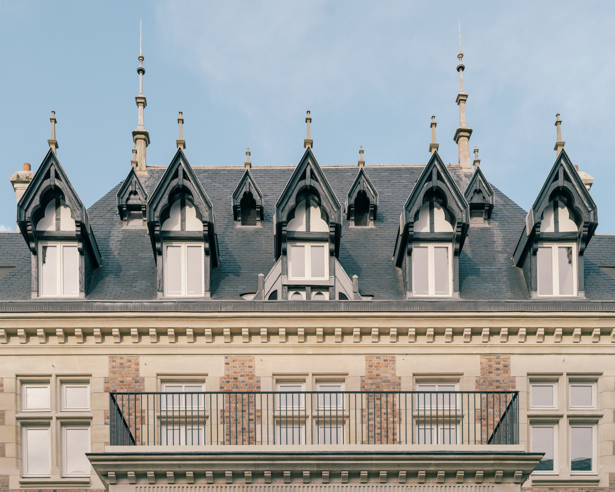 The stone and brick façades are preserved and restored where needed, in keeping with the original materials.
