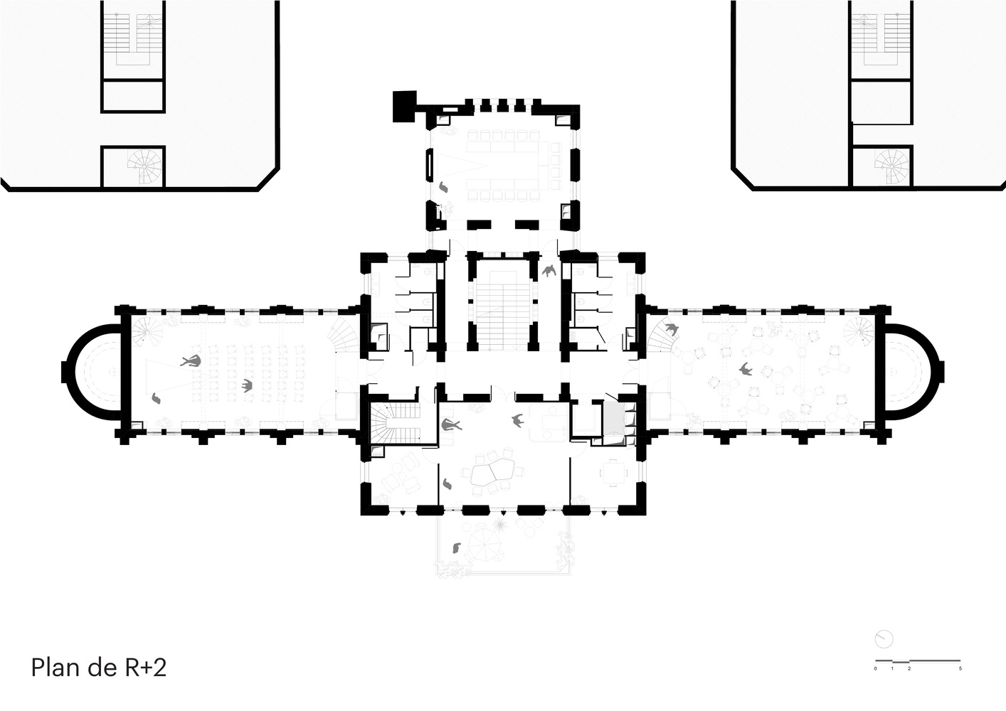 At the rear, former technical areas are fully greened, transforming the grounds into a calm and lively setting.