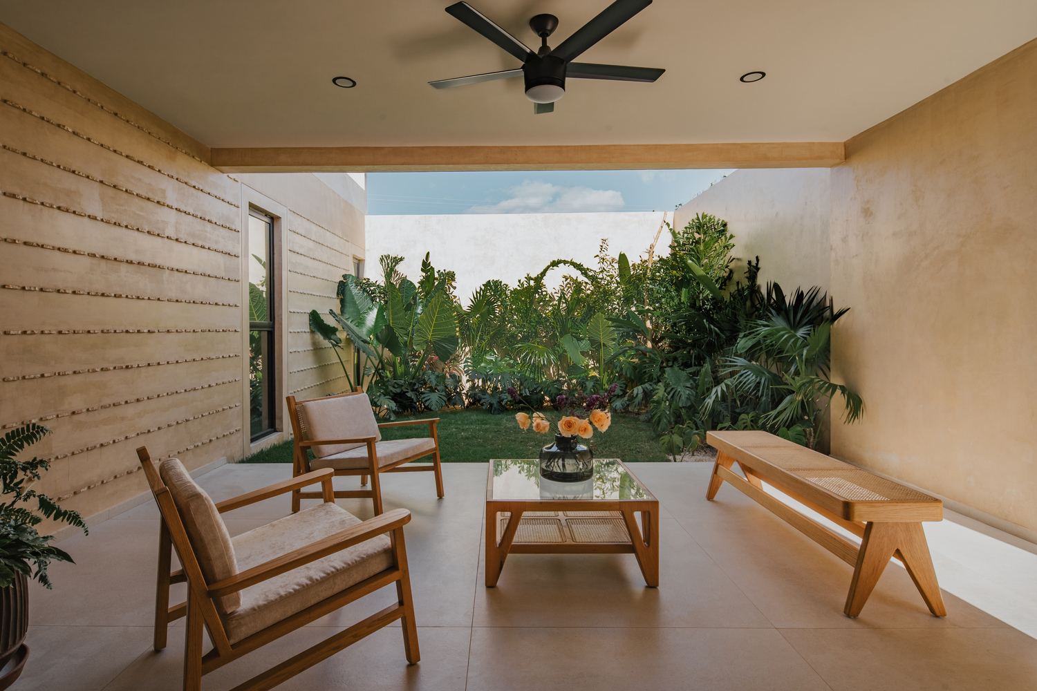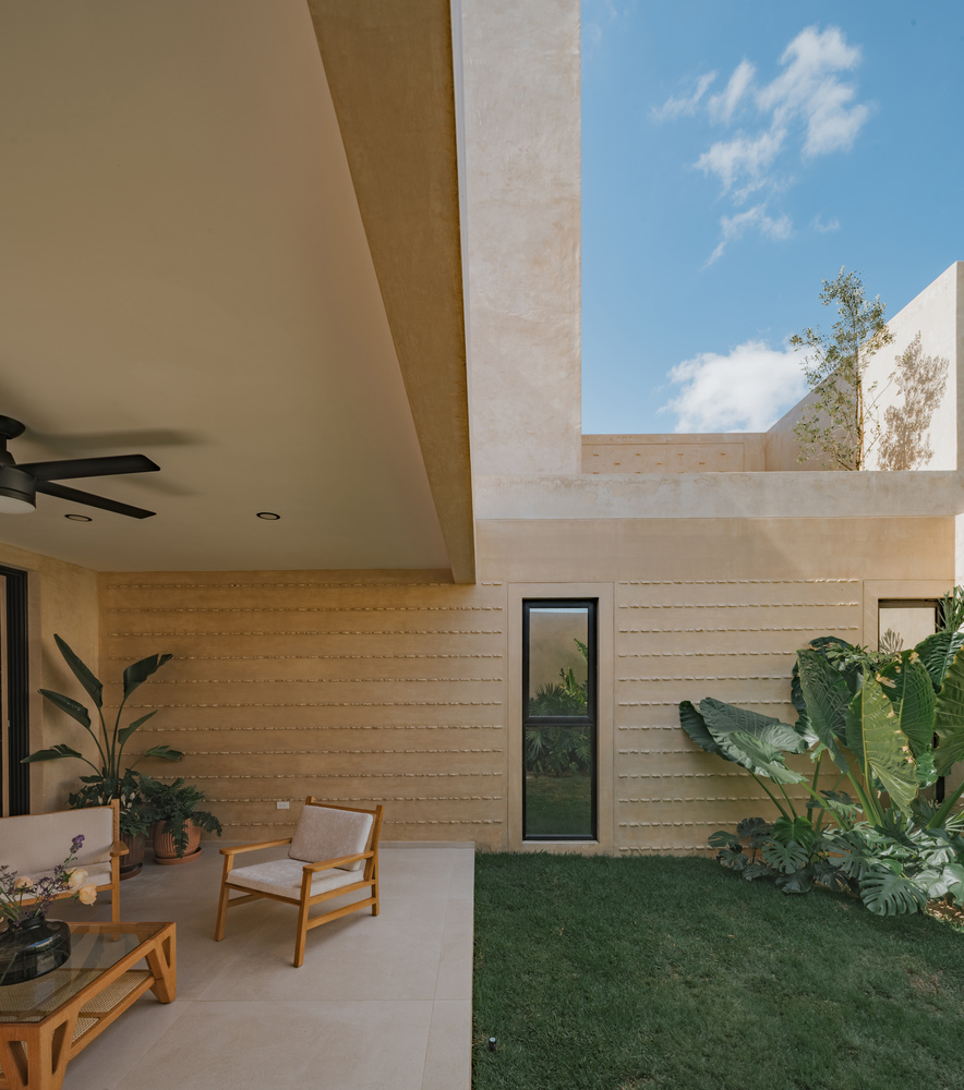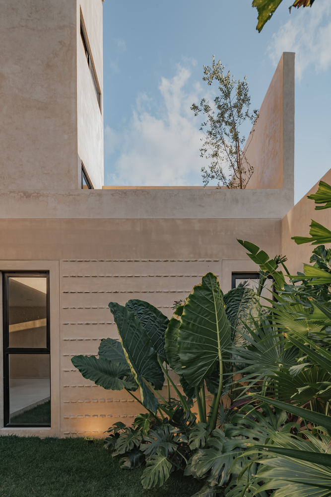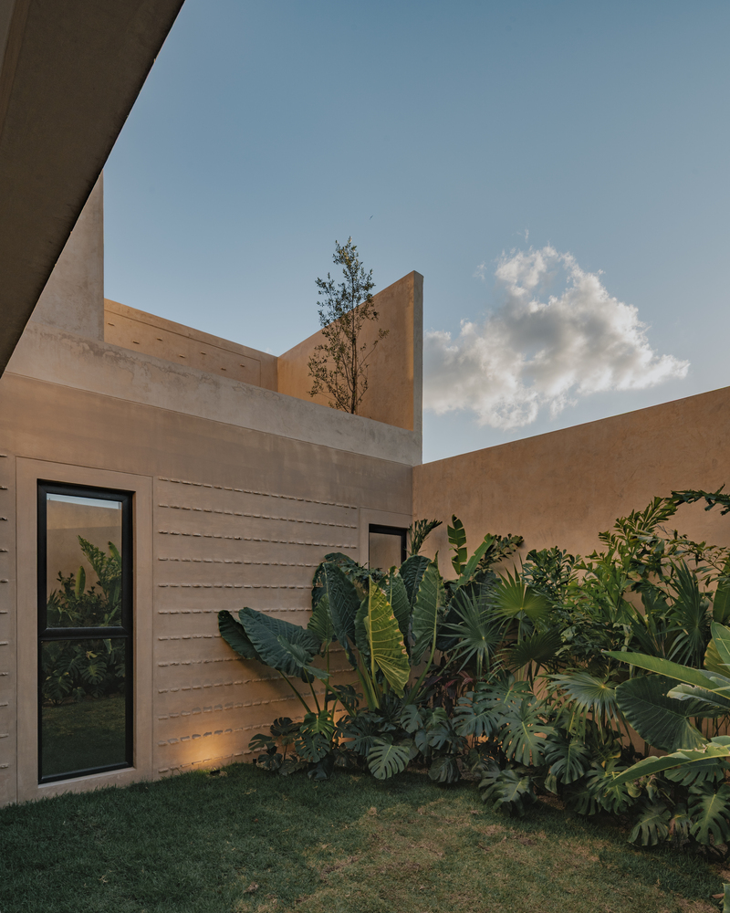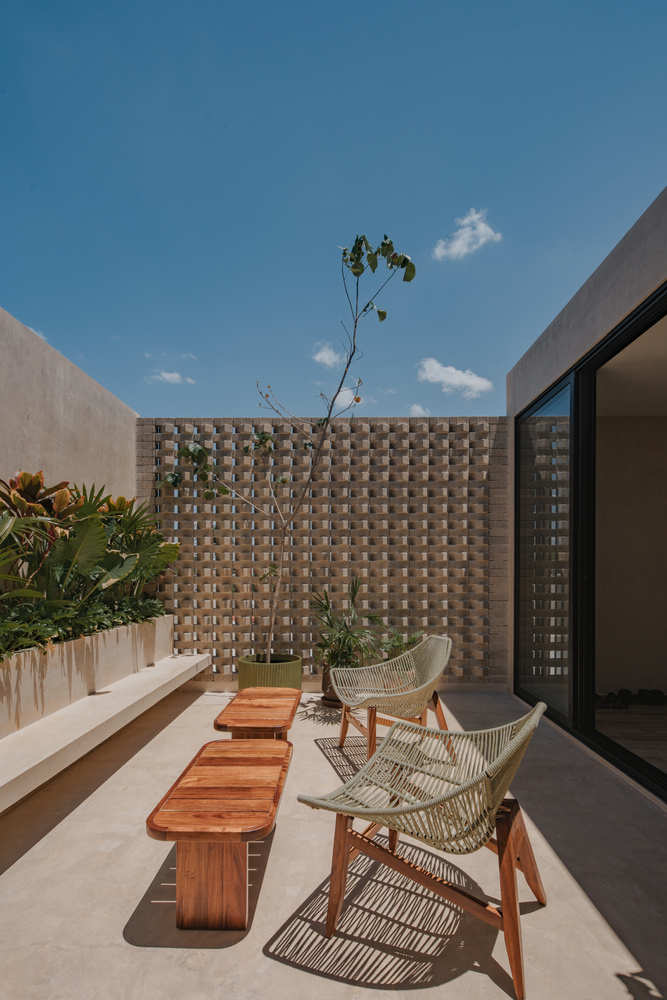 The jalousies, made with local adocreto, filter the sun and time with a discreet, useful, and symbolic beauty.