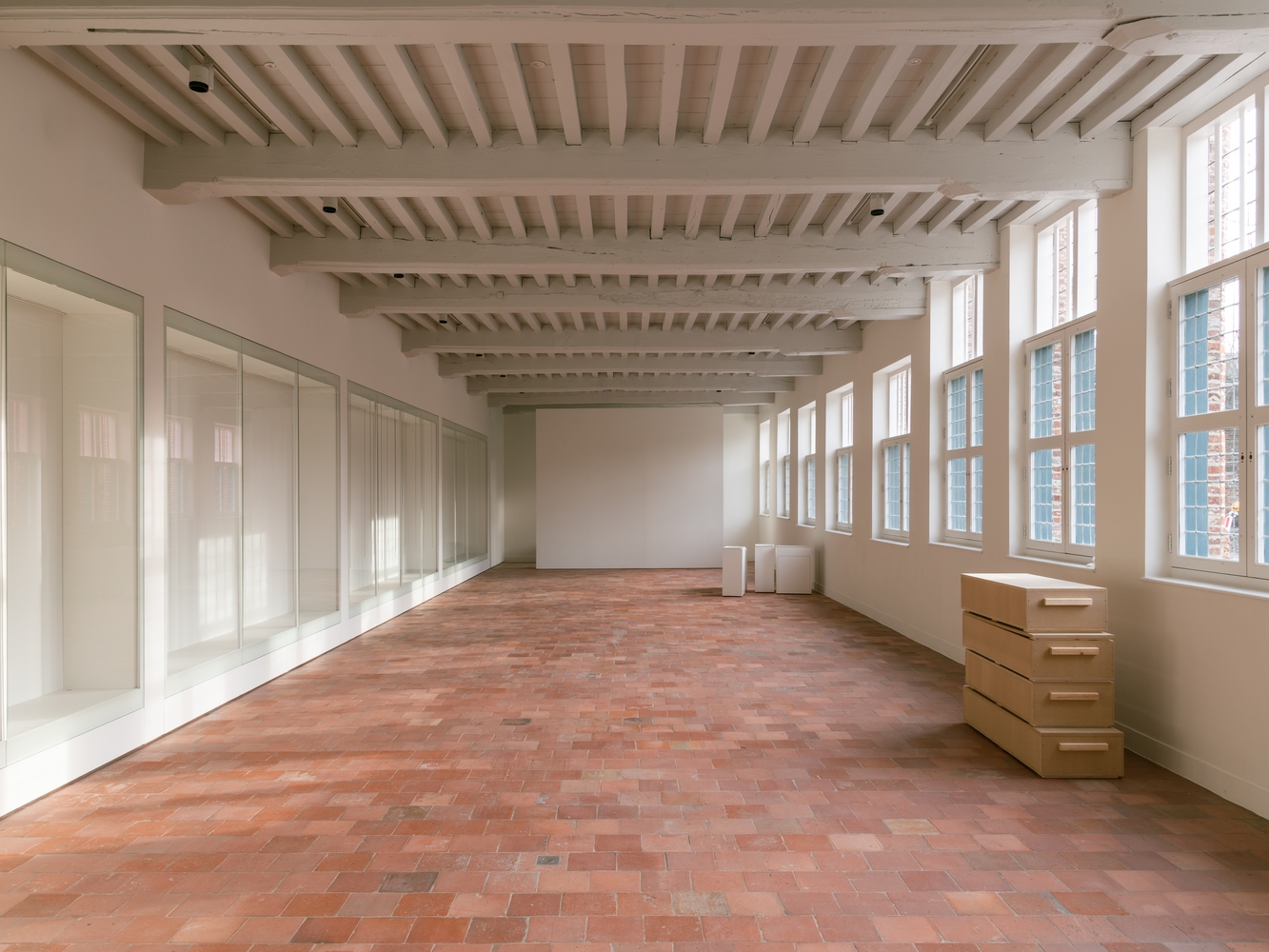 A long display case was added to showcase works from the city of Kortrijk, inviting artists to engage with the collection.