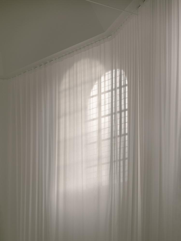 Minimal interventions were made to the former dormitory building, restoring the original windows, ceiling, and red terracotta floor.