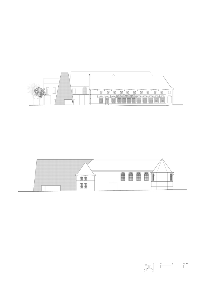 The proposal reveals the beautiful spatiality of the original structure of the abbey chapel and dormitories, restores the former courtyard and adds a state-of-the-art subterranean exhibition space.