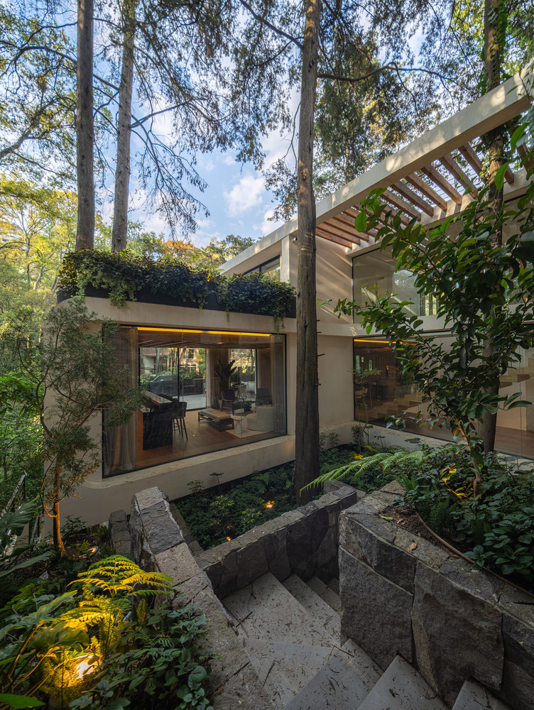 Located on a steeply sloped site in the Lomas de Vista Hermosa neighborhood of Mexico City, Casa Tlapexco is a residential project that emerges from a deep dialogue with the natural topography.