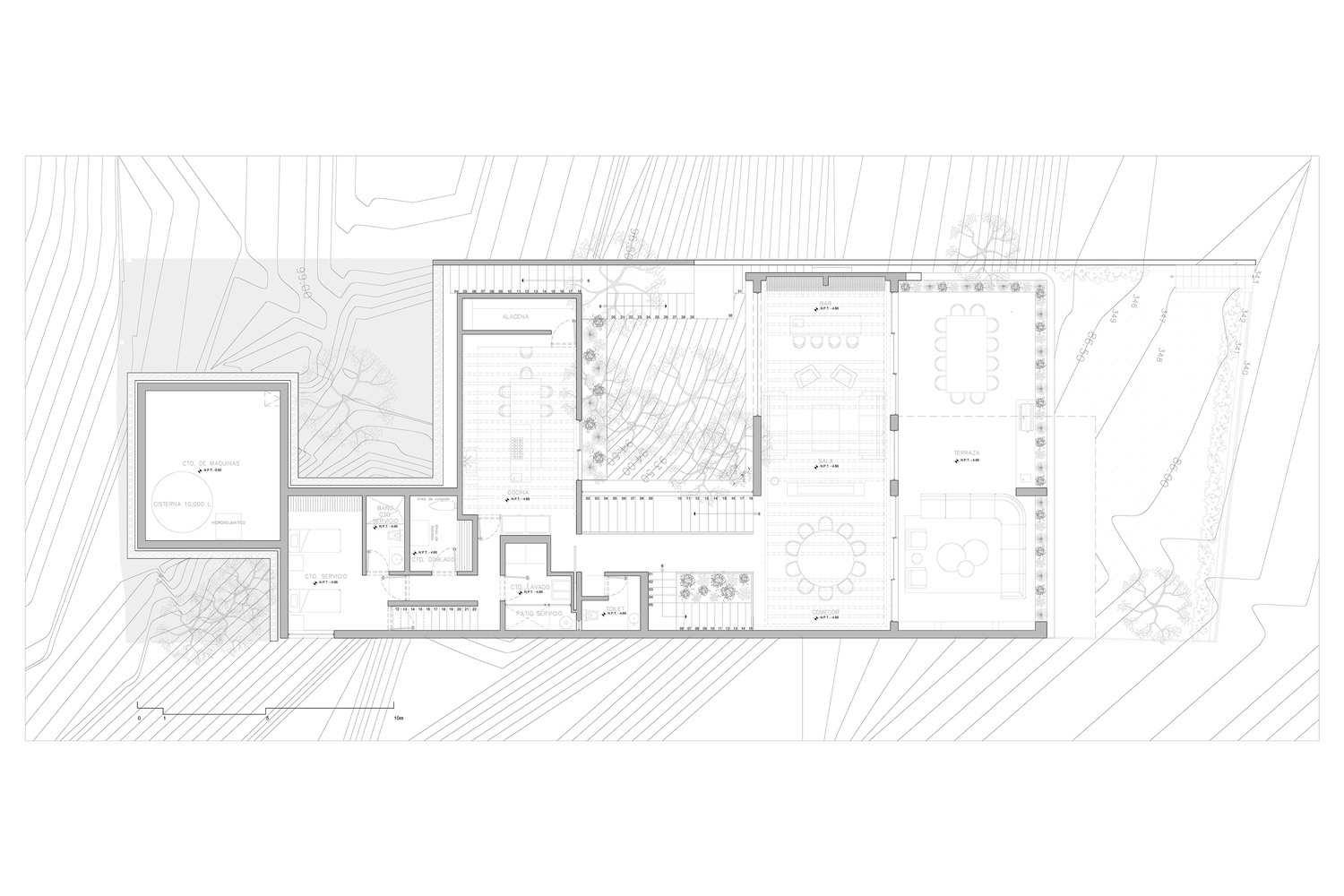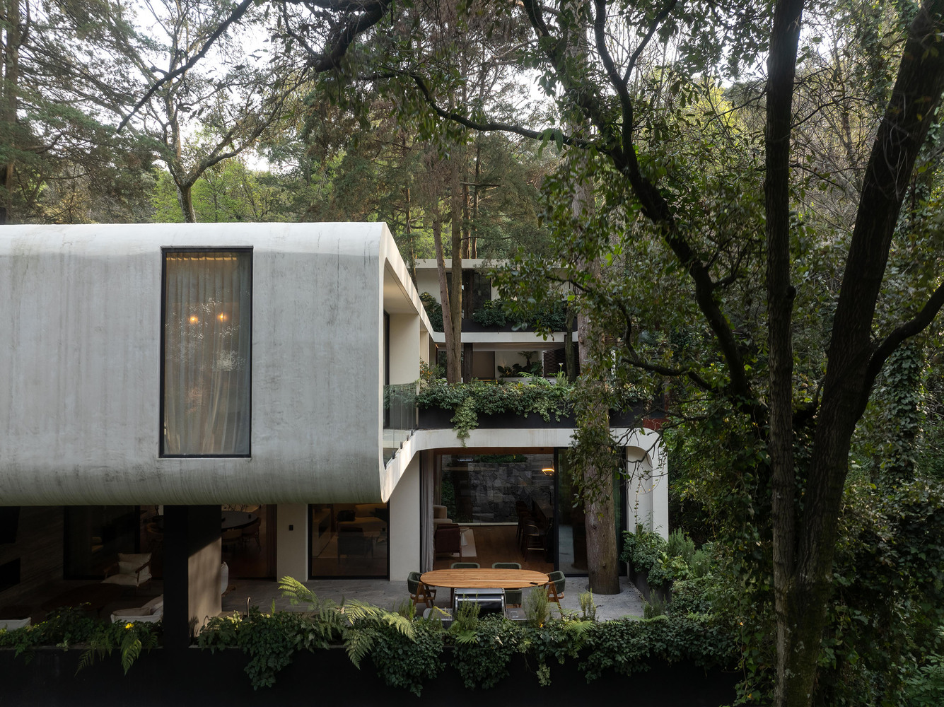 In total, Casa Tlapexco integrates 447.64 m² of green areas distributed across its lower levels.
