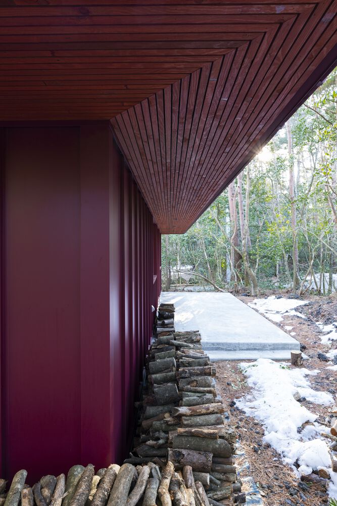 Only an hour and a half from their home in Tokyo, this red cottage provides a retreat for the owners from their urban city life.