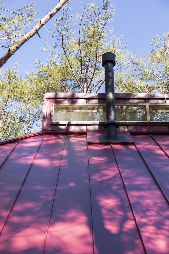 As hot air rises, it is expelled in vents on either side of the clerestory window, creating a stack effect that in turn draws in air from the cool surrounding forest floor.