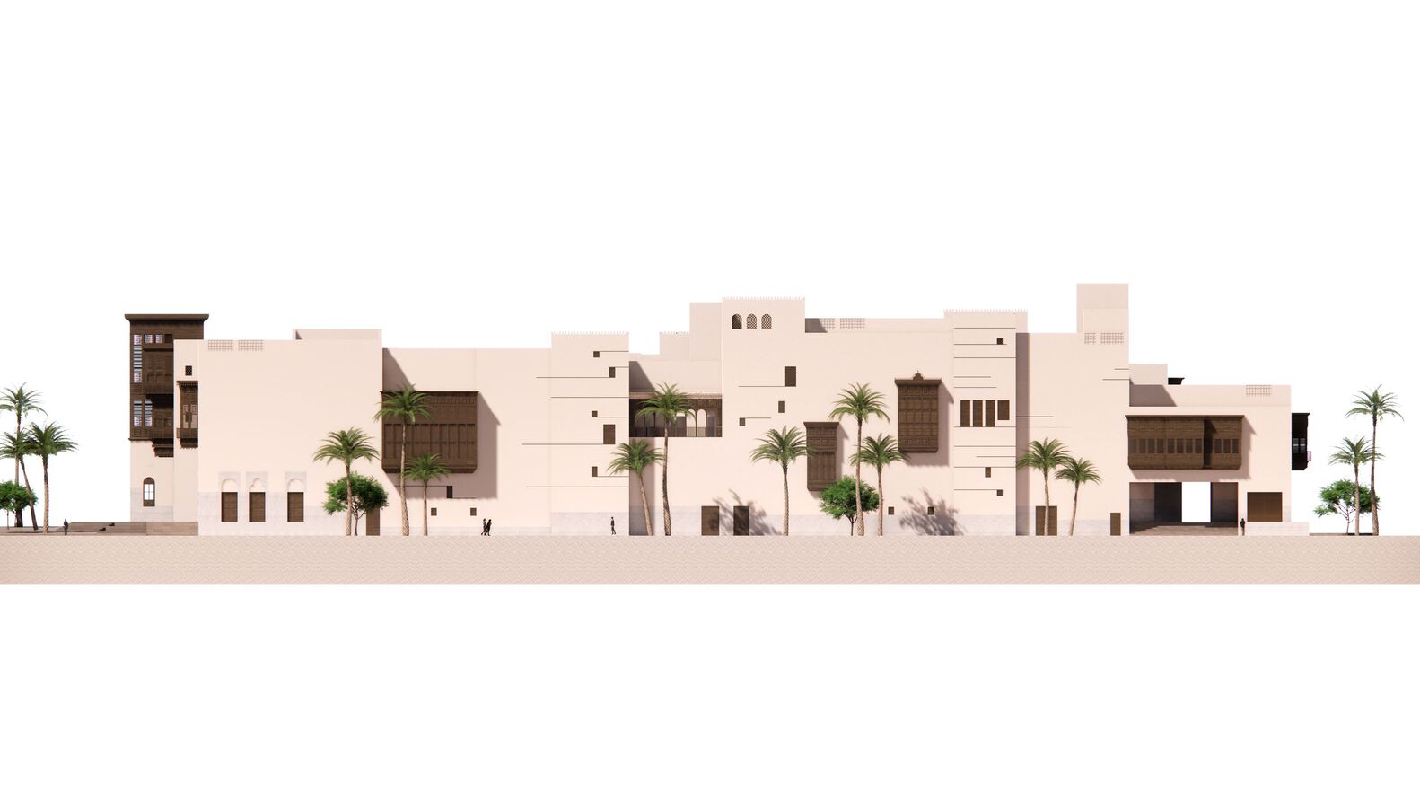 Externally, the architecture bridges the tactile richness of Jeddah's vernacular façades with contemporary spatial logic.
