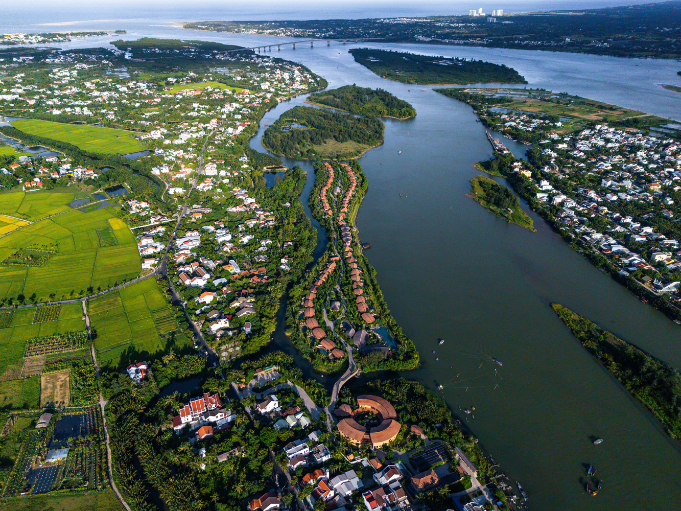 Namia River Retreat is a five-star sustainable wellness resort located on a five-hectare private island along the Thu Bon River, less than two kilometers from Hoi An Ancient Town.