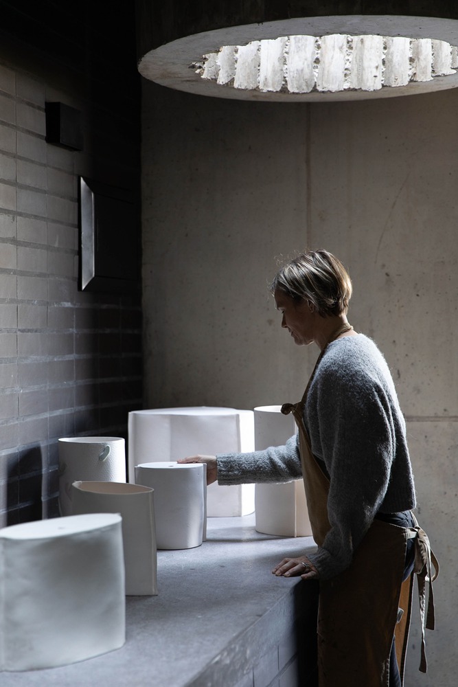 The building accommodates a ceramic studio, a cellar, and a gathering space that transforms to host dinners, music, and the occasional overnight guest.