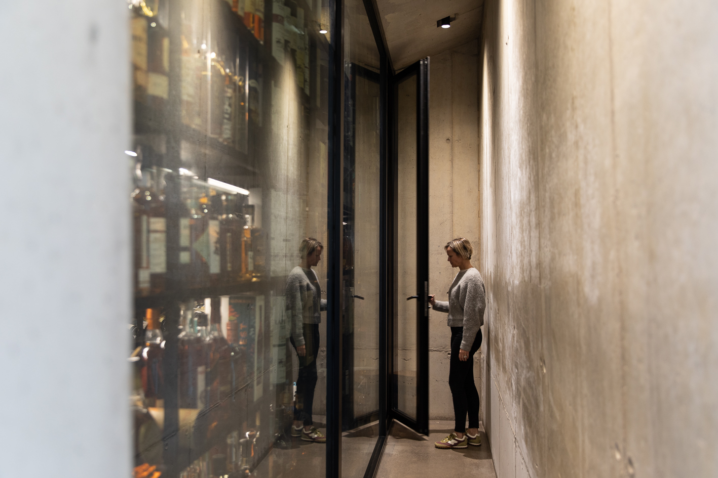 Commissioned by a couple seeking a dedicated space for creative work, entertaining, and storing their growing wine and whiskey collection, the project reflects a desire for seclusion without detachment.