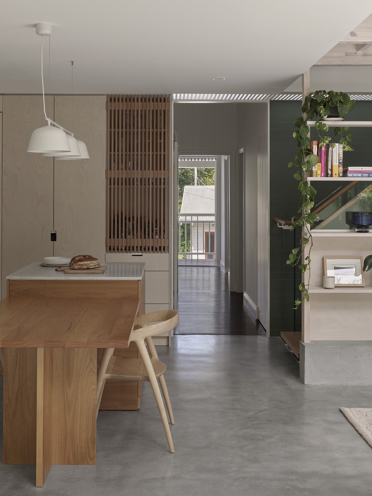 Rather than demolish the modest post-war workers' cottage, the architects restored the original timber structure, celebrating its heritage character while giving it a new purpose.
