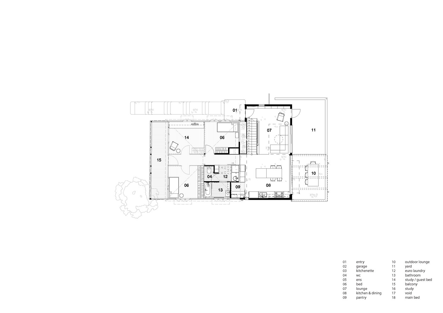 A kerbside garden and low fence re-establish a friendly dialogue with the neighbourhood, encouraging connection rather than seclusion.