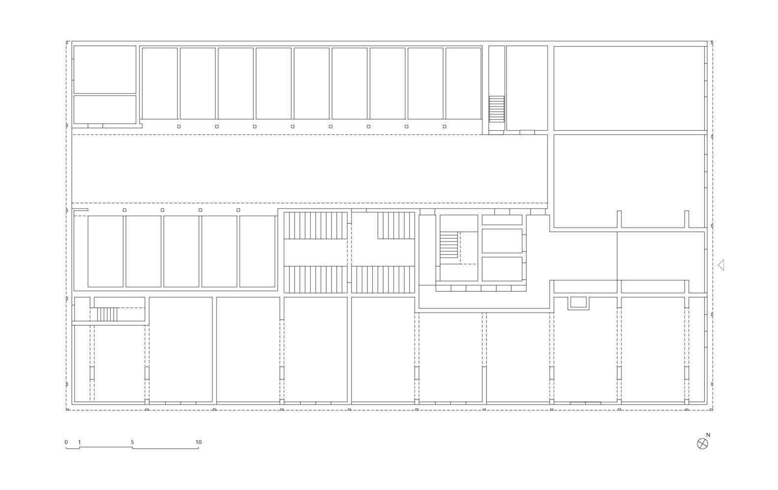 The load-bearing timber portals and large bay spans allow flexible partitioning of units from one to six per floor. Floor-to-ceiling heights vary, and some residences feature double-height interiors (lofts).