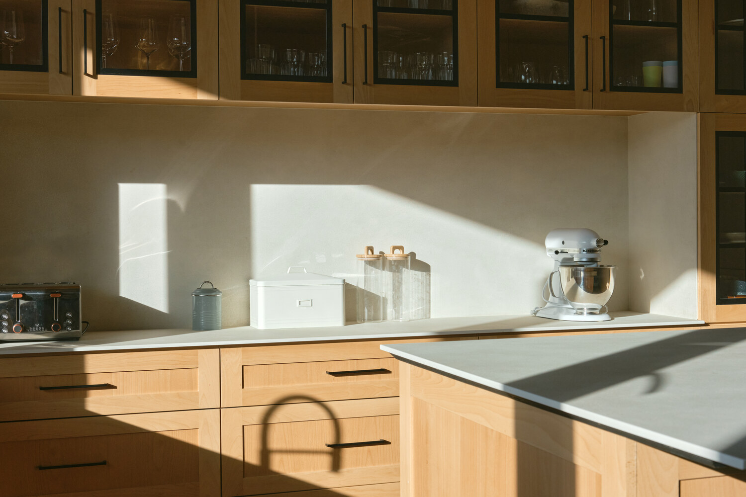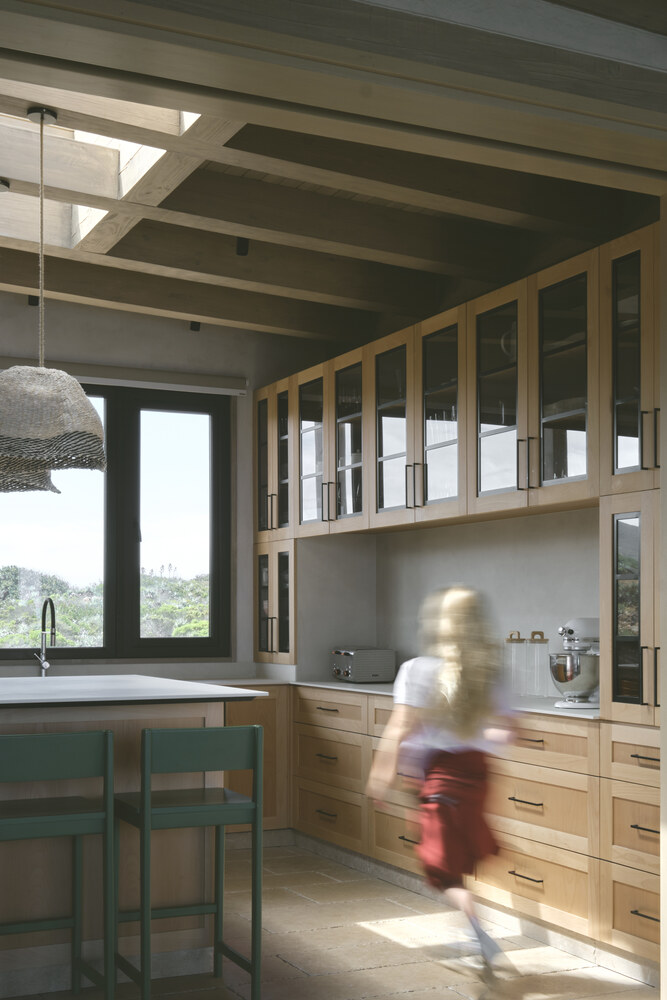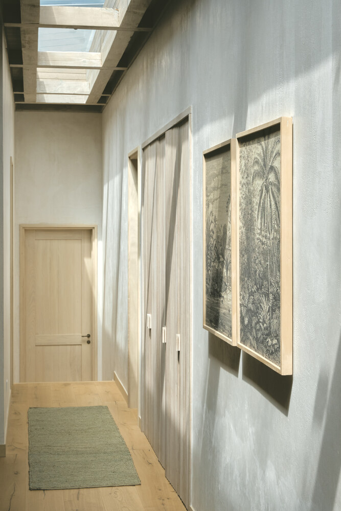 The space is in direct relation to the kitchen through a large sliding door that allows for the regulation of the connection through its opening.