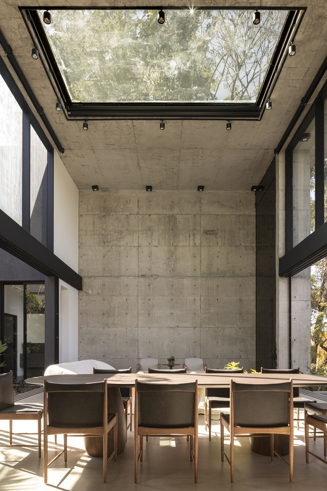 The geometry of the slabs and the proportion between the horizontal and vertical planes define the formal identity of the project.