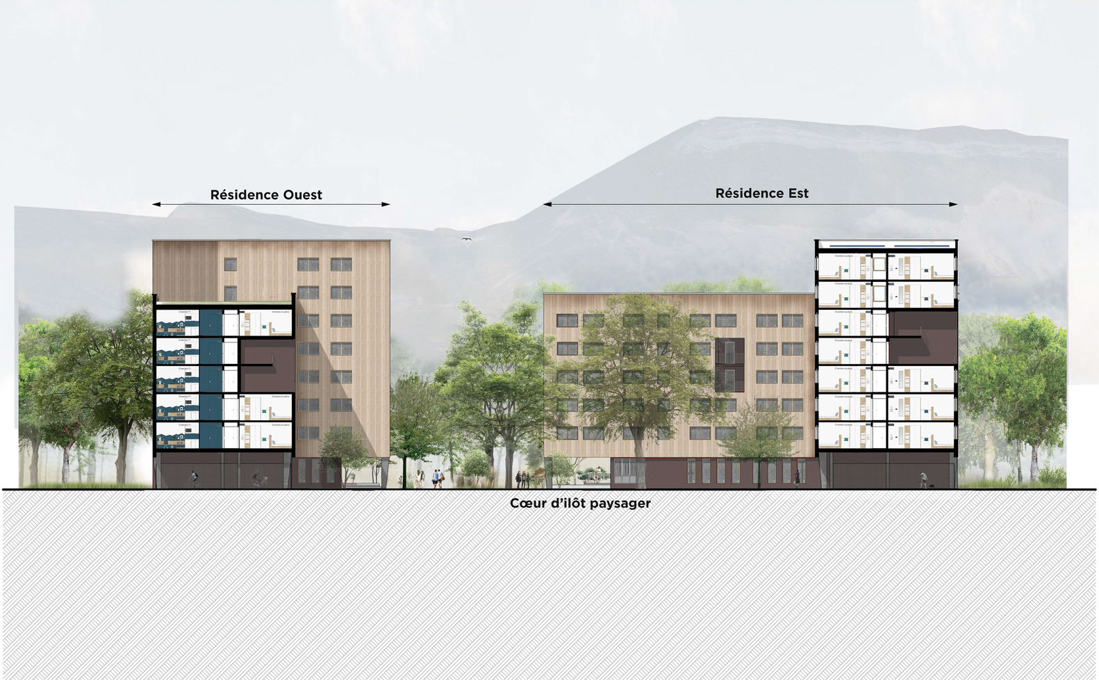 In the heart of a remarkable alpine landscape, the Joséphine Baker student residence forges a close connection with its environment through an architecture that combines precise volumes and a dialogue between materials.