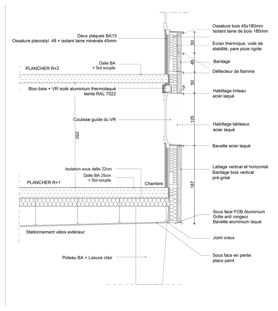 On the heart of the block side, the project takes on a new look. The timber frame stands out as a direct echo of the surrounding nature.