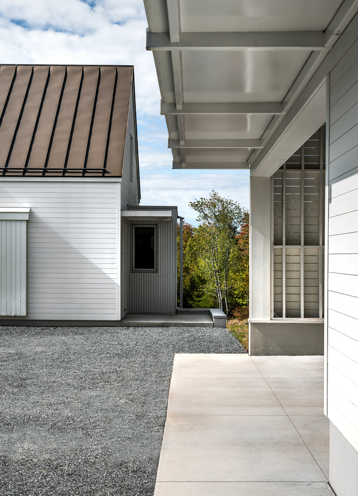 A stripped-down aesthetic rooted in the past but clearly of the present connects the project to the shared memory of rural Maine architecture.