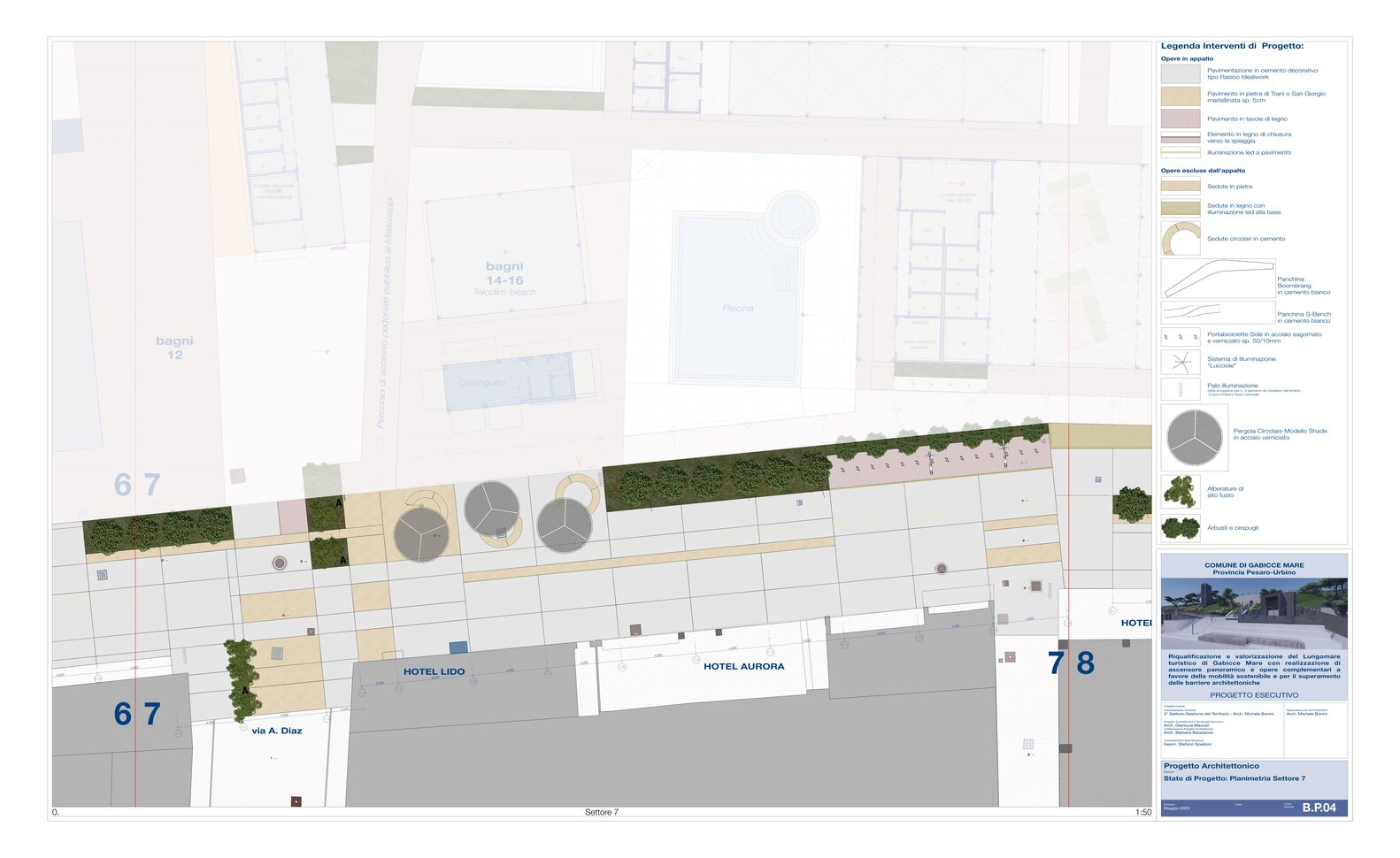 The project for the city's new seafront reimagines the public space of the tourist promenade, focusing on social interaction and community well-being, primarily through the elimination of vehicular traffic along the route.