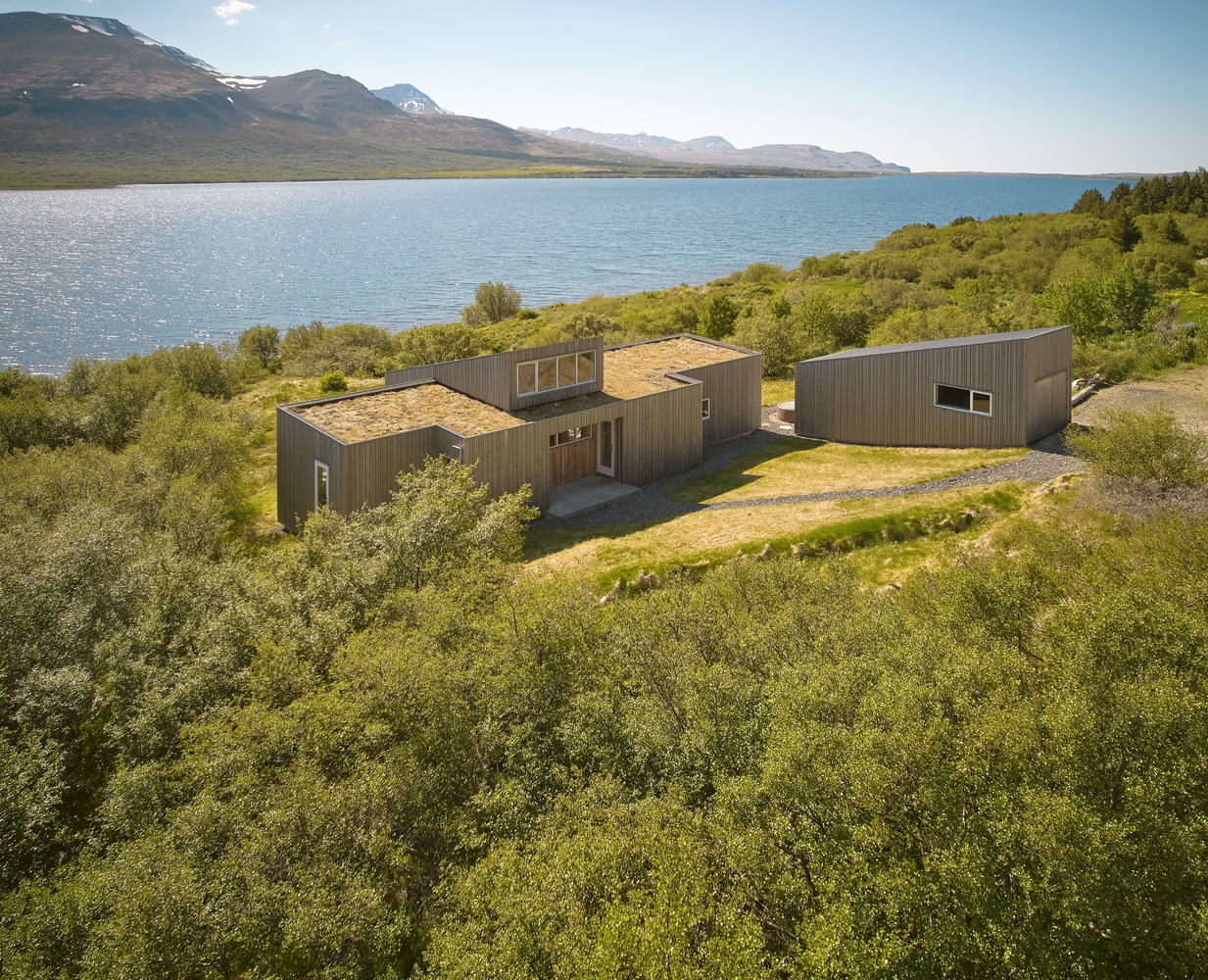 Nestled in a secluded valley in southwest Iceland, the holiday home is situated on a site defined by untouched natural vegetation, including mountain birch, heather, and grass.