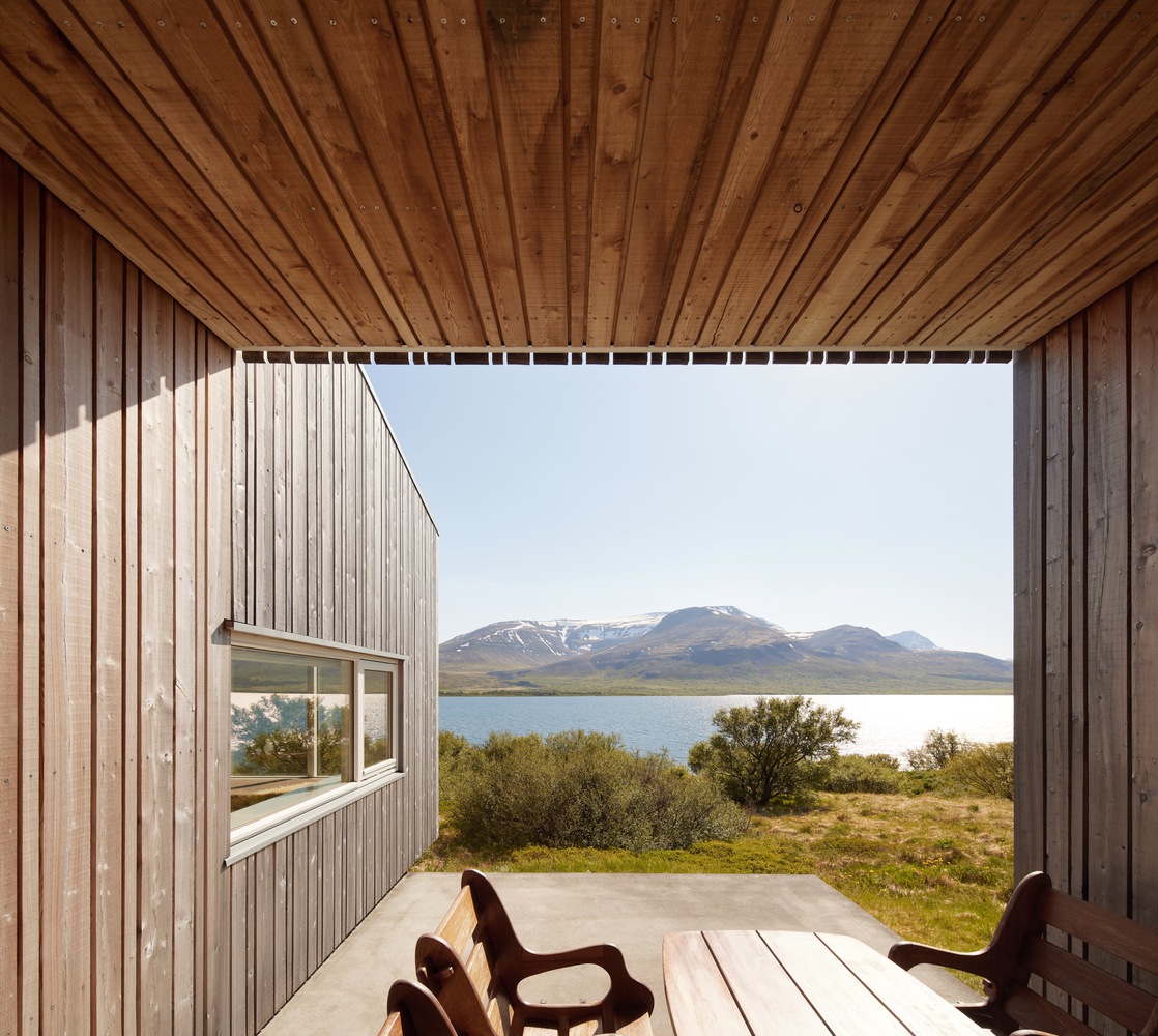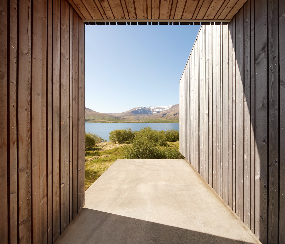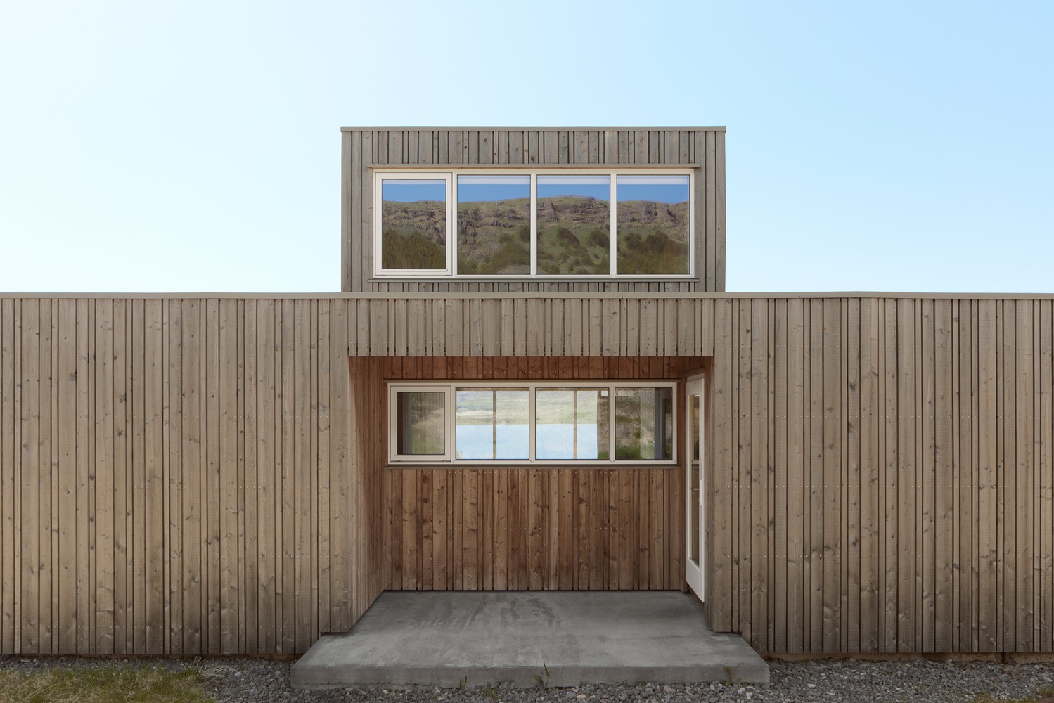All façades are clad in untreated vertical larch panelling, designed to weather naturally over time and integrate seamlessly with the Icelandic environment.