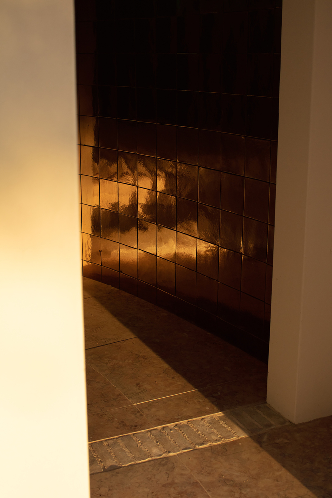 This sand was even utilized in the paint for the front of the building, ensuring a natural color palette that blends harmoniously with its environment, as if the structure itself emerged organically from nature.