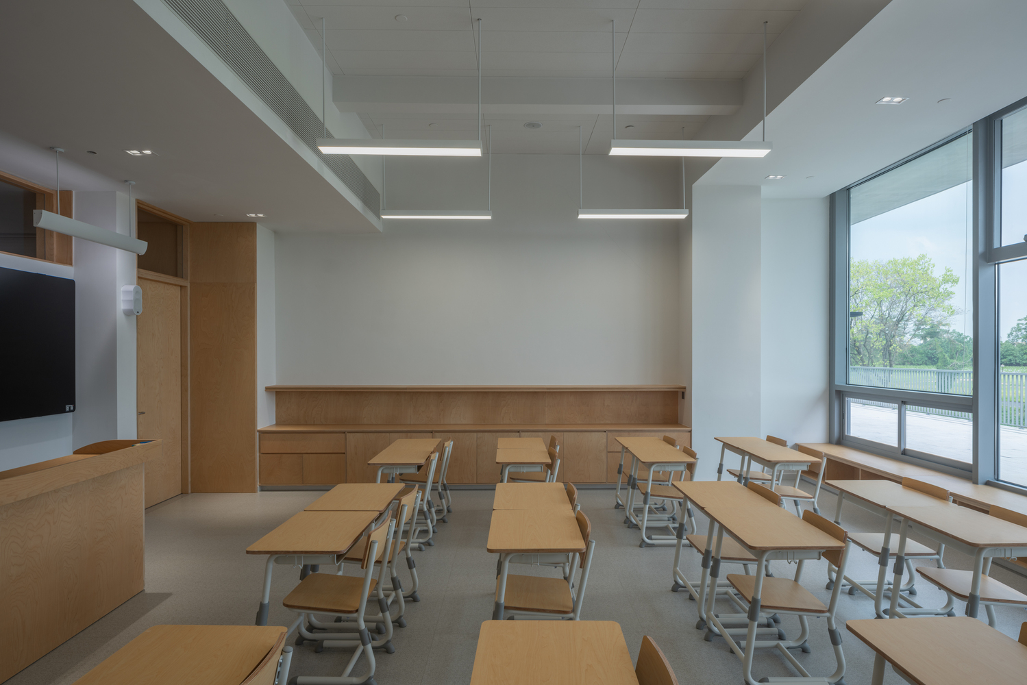 The second and third floors house a double-height multifunctional hall that incorporates sports amenities, along with student dormitories on both levels.