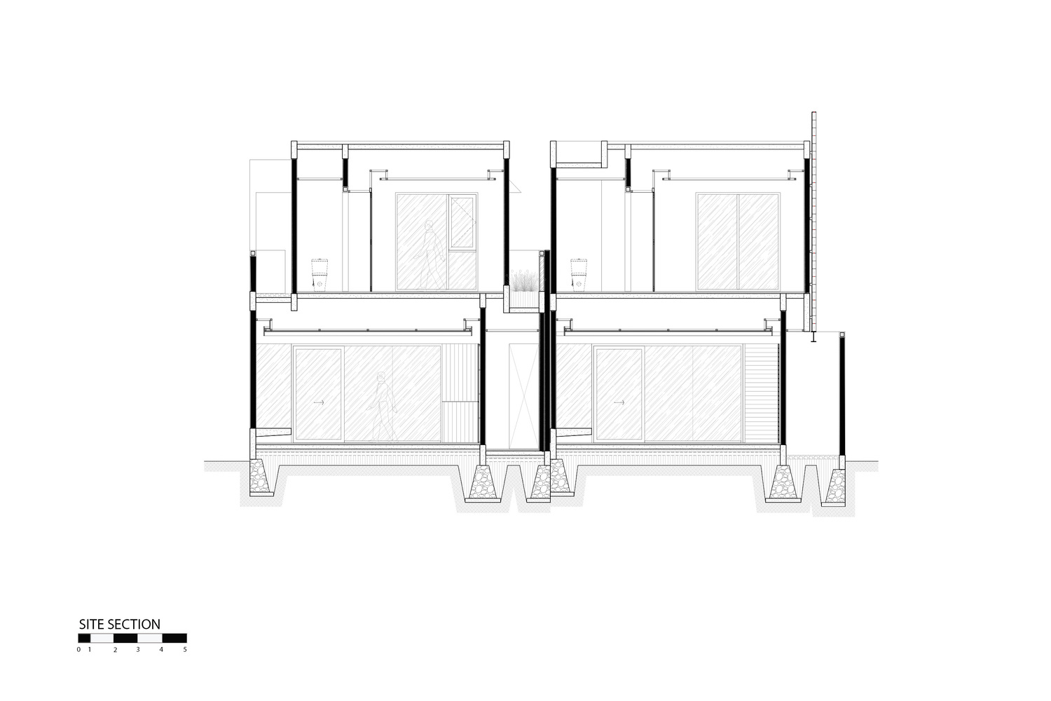 This courtyard mediates between the public zone at the front and the private sleeping areas at the back and upper level.