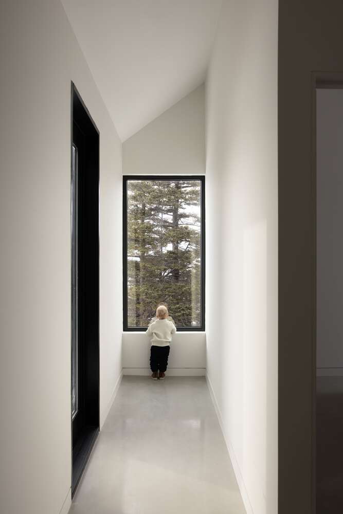 This volume serves as a stereotomic element, anchoring the cedar-clad gable volumes above. Each element of the house was chosen to withstand the relentless onslaught of the elements, ensuring longevity and resilience.