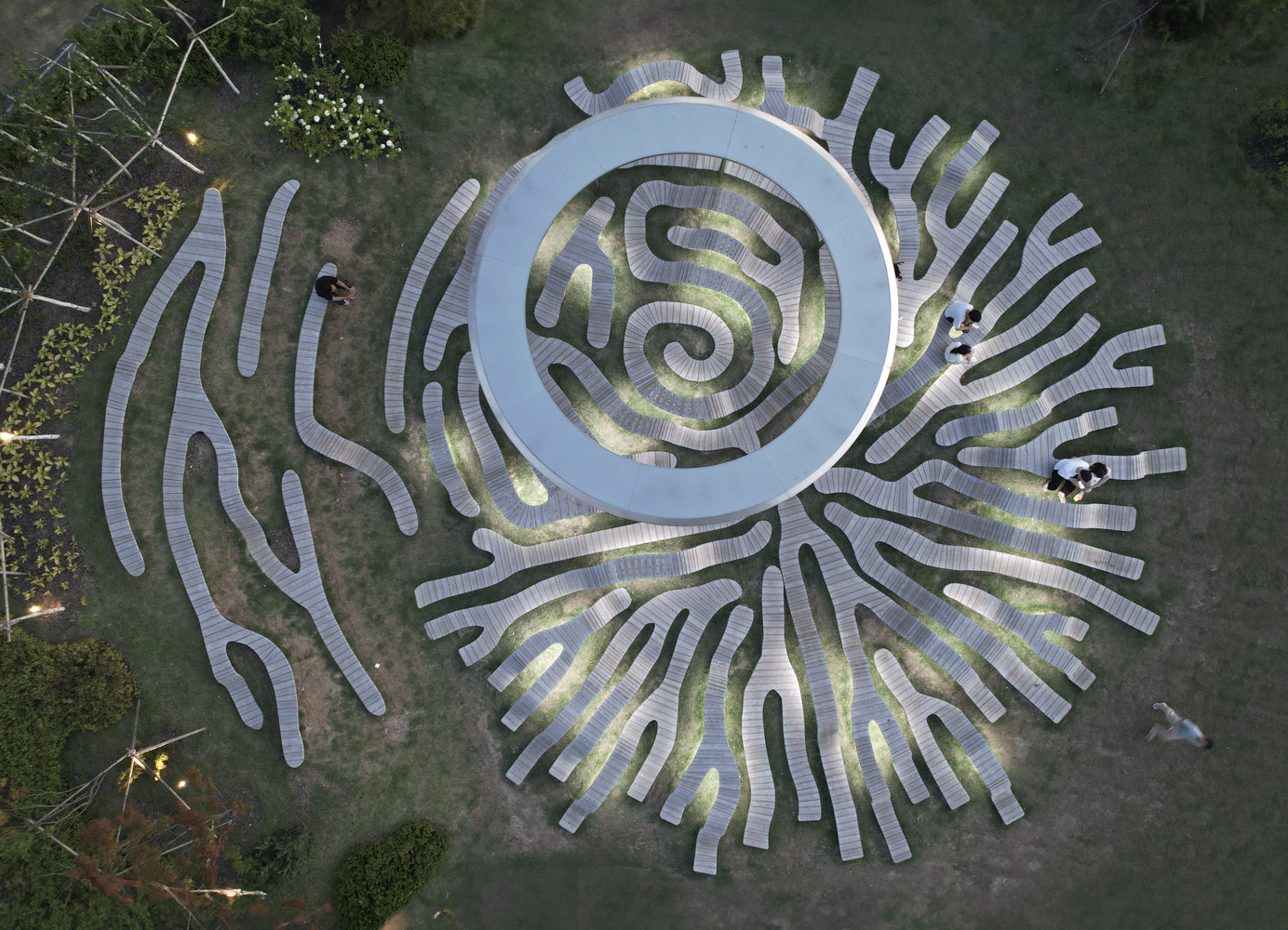 In particular, the central circular canopy redefines the spatial identity while introducing a new variable into the diffusive pattern, creating an intertwined relationship between two generative systems.