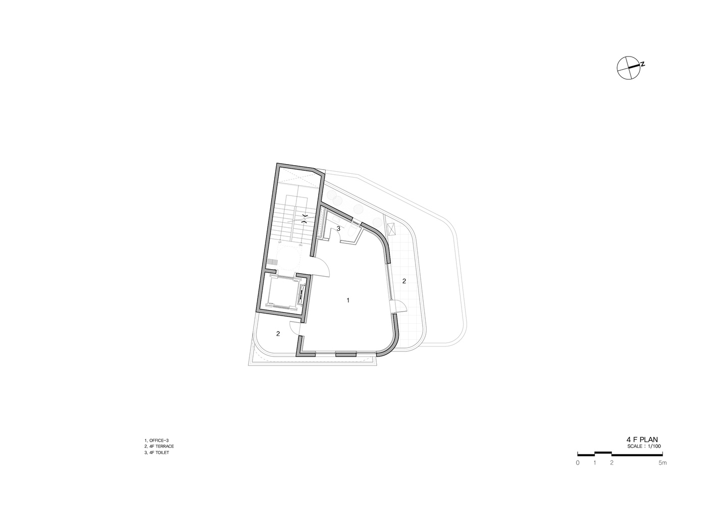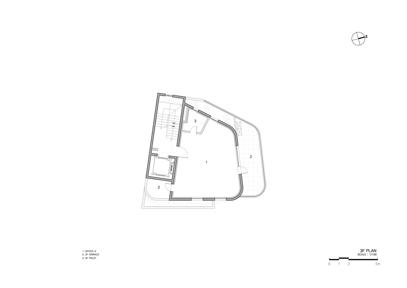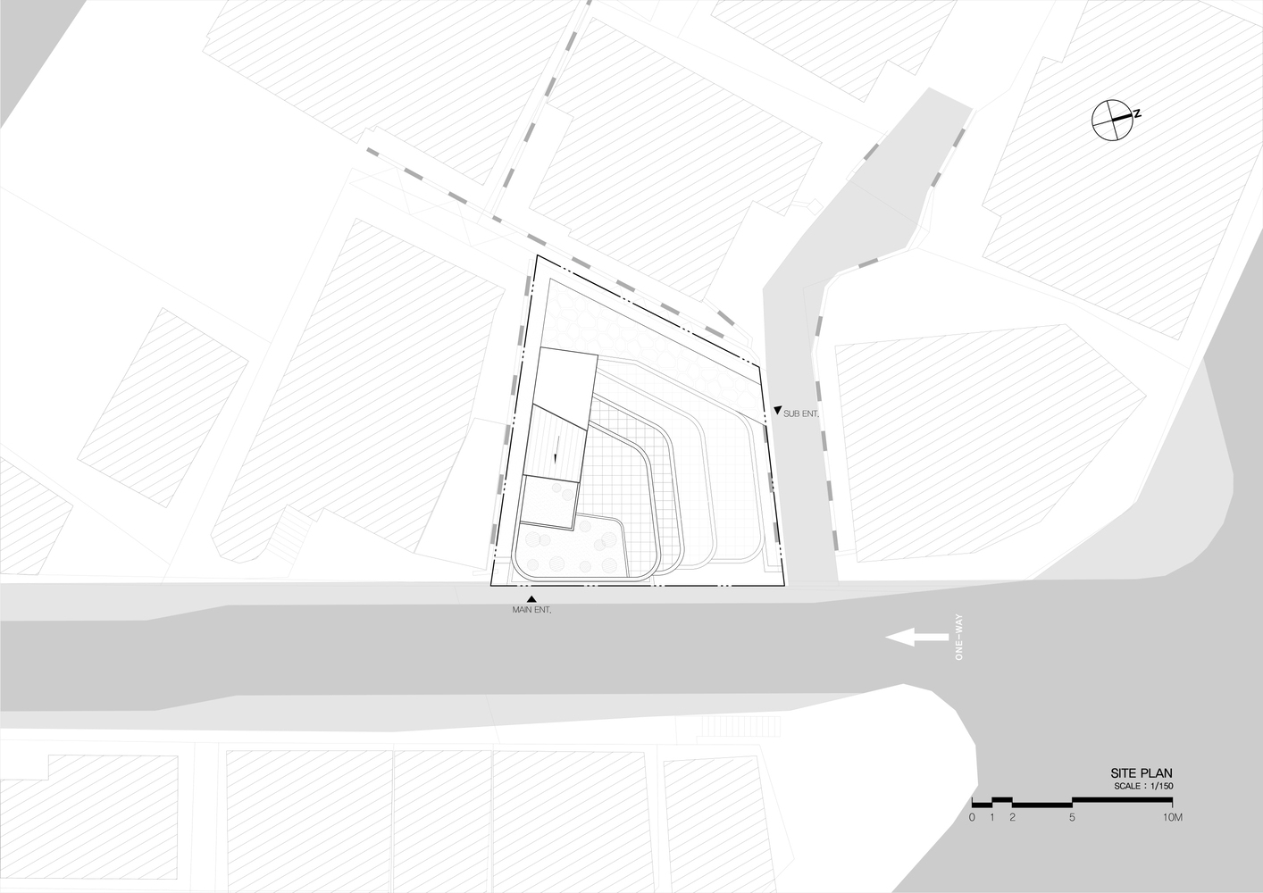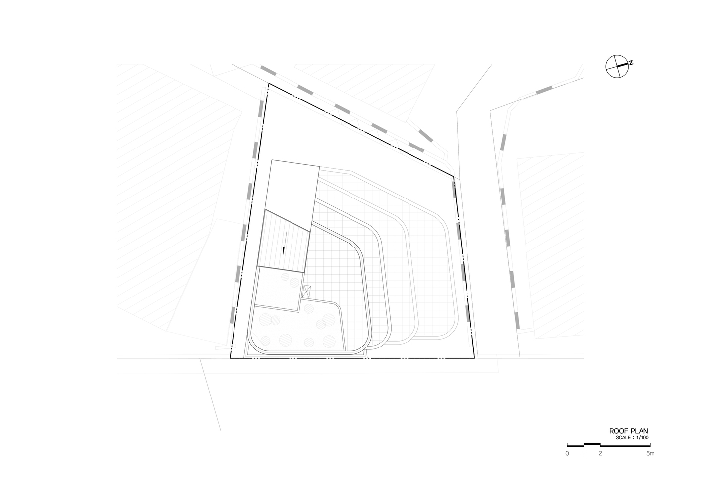 The northern side of the site is bordered by adjacent land on higher ground, which imposed a height restriction due to the North-Facing Daylight Regulation (Jeongbuk Iljo).