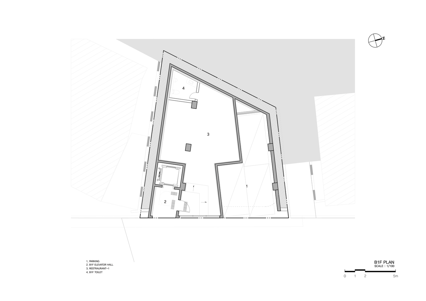 The geographical conditions in Seongbuk-dong were also challenging. Being situated on the foothills of Bukhansan Mountain, the subsoil is generally composed of bedrock, making the creation of a basement level quite difficult.