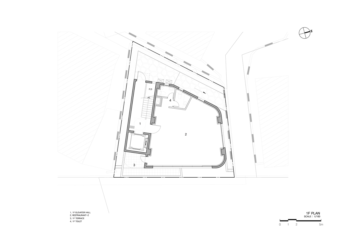 Anticipating that I would no longer be able to visit this shop after the new construction, I sought to subtly recall the memory of the temporary burger joint by reflecting the shape of several stacked burger buns in the building's design.