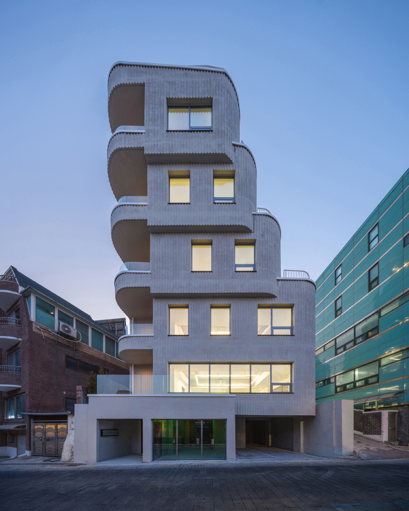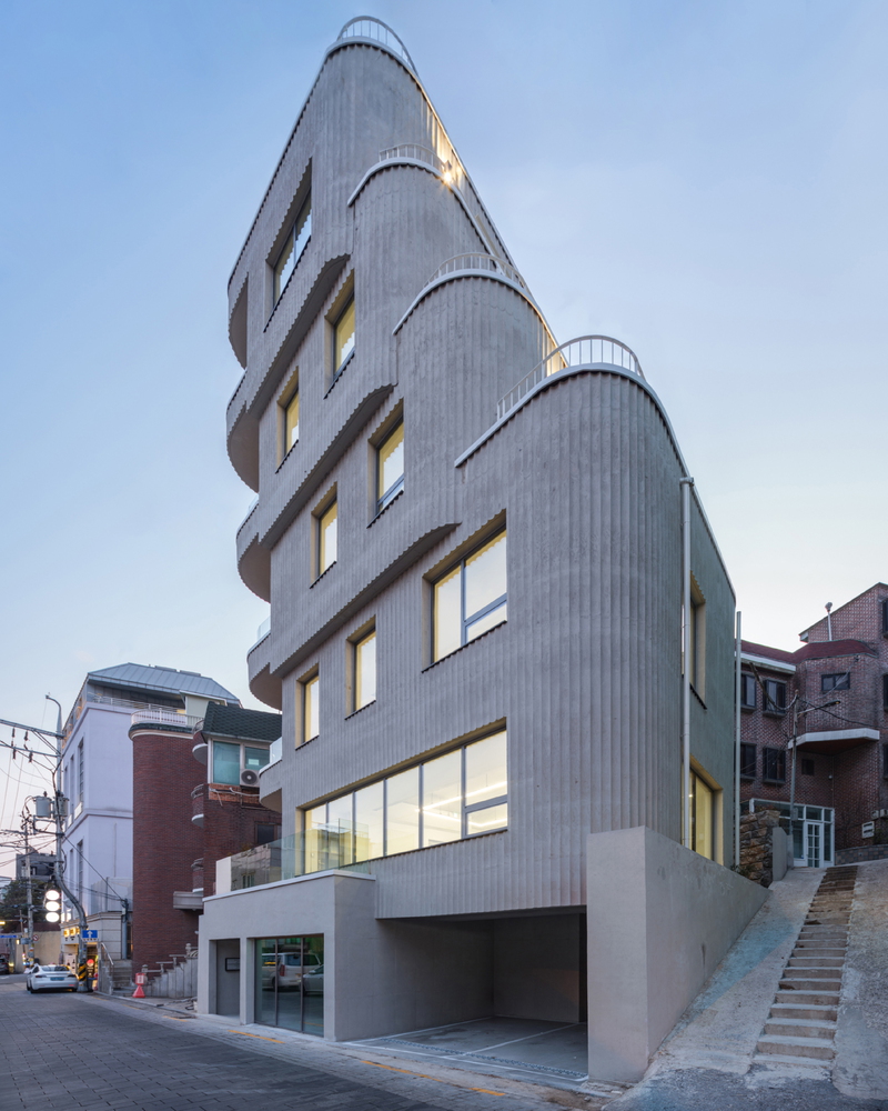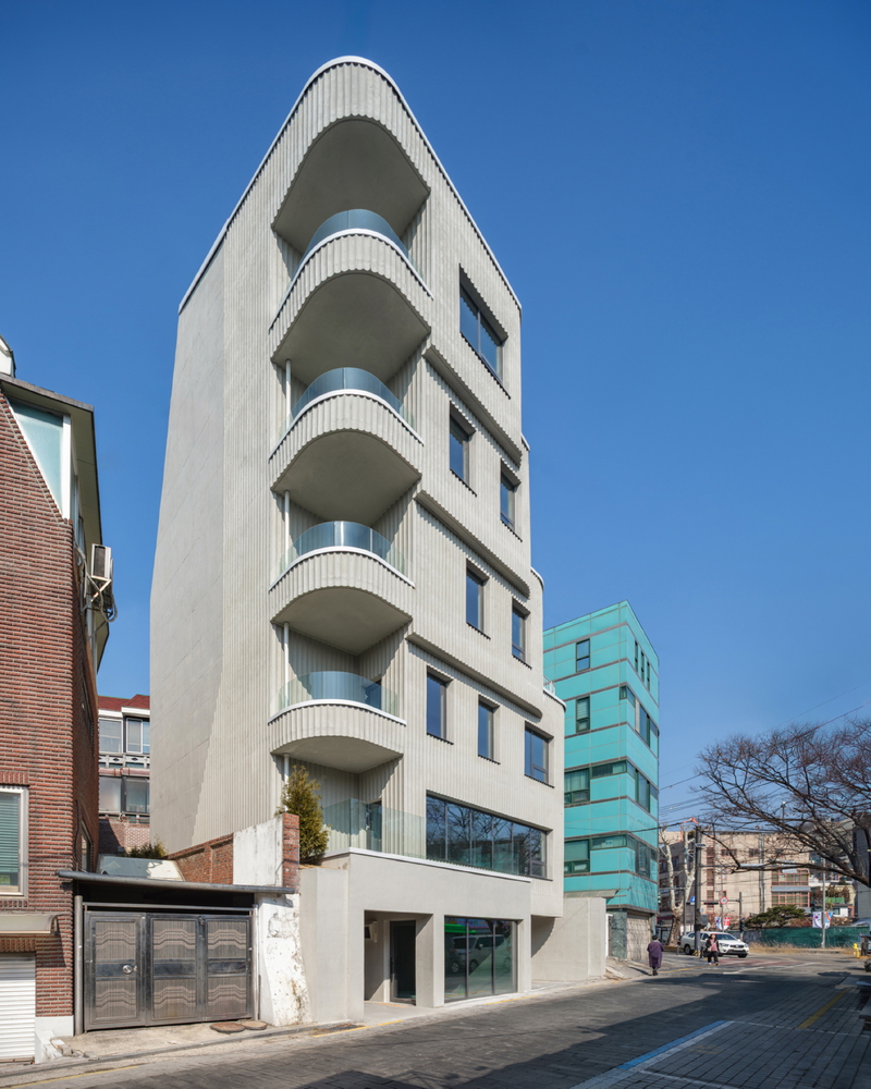 Since the building was to be constructed in a prominent location easily seen by anyone traveling on Seongbuk-ro, the facade's strong visibility and an attractive texture were paramount for this commercial rental property, even while navigating legal constraints.