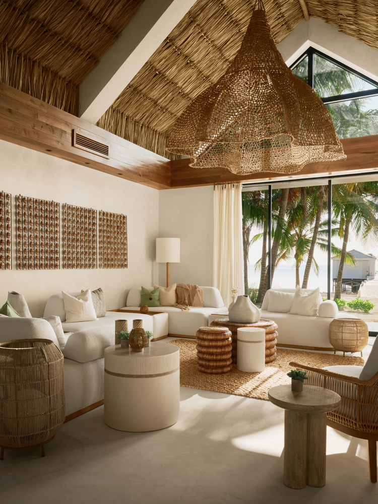 Materiality plays a starring role in rooting the project to its place. The structure is entirely concrete, a necessity in a region prone to hurricanes, yet it is softened by native woods, palm fronds, and handmade elements that lend warmth and character.
