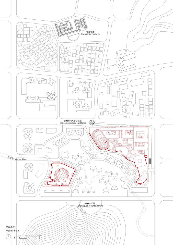 A few hundred meters north stands the Hakka Walled Houses, Qixing Shiju Historic Residence. From the north to the south, the two hills and a solitary tree sketch a subtle urban-natural-cultural axis.