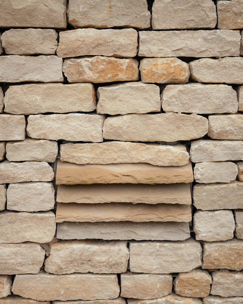 Oliver designed a gradual and deliberate unveiling of the house. The hand-crafted dry-wall stonework is punctuated by one large window, offering a sense of intrigue from the first approach, while protecting the clients' privacy.