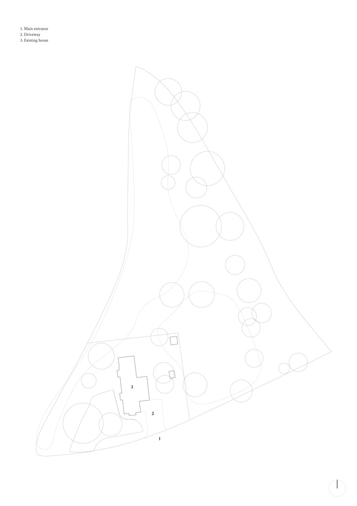 The living spaces and outdoor areas are oriented to the northwest, set away from the view of the village's main road and neighboring houses.