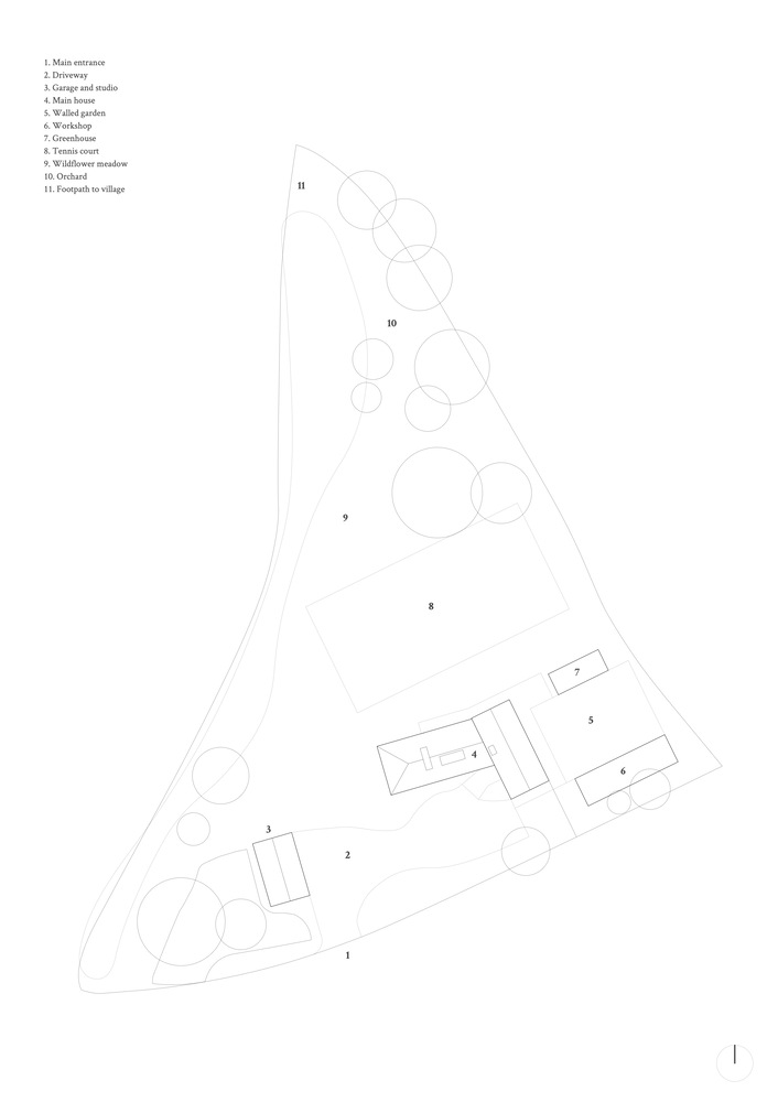 Oliver conceived a master plan for the site to include a new low-energy home that supports an active lifestyle and busy social calendar while integrating quiet spaces for work and rest. A lawn tennis court, vast garden beds, and zoning for a walled garden top off the clients' outdoor wishlist, resulting in a home that prioritizes connection to nature throughout.